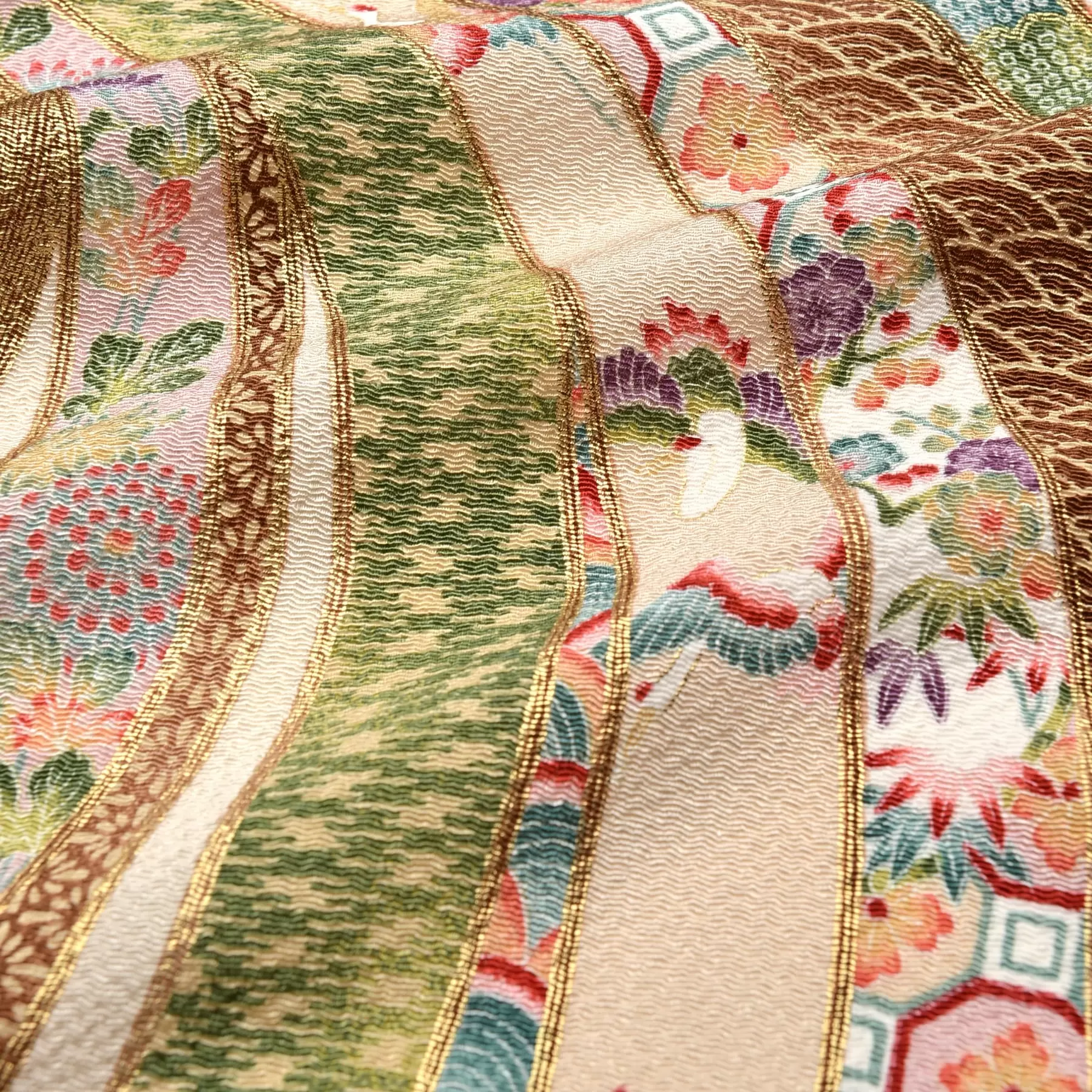 千總が文化の継承を目的に所蔵する、染織品、美術品、歴史的資料よりなる千總コレクション。その千總コレクションをベースに、上質な丹後縮緬の生地を「手捺染」という染色技法を使い、一色ずつ職人が手作業で染め上げたオリジナルの袱紗です。