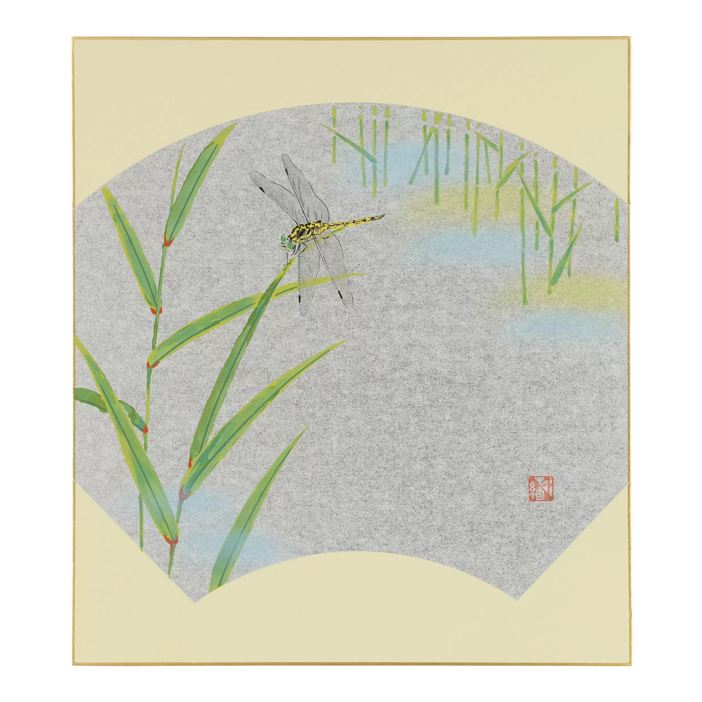 千總が得意とする型友禅の技法で作られたオリジナルの色紙です。染色する色の数だけ型紙を作り、職人が手で一枚一枚刷り上げる「手捺染」という技法が使われています。手作業が生み出すやわらかな風合いや顔料のあざやかな発色が、きもので培われた図案をいきいきと花咲かせます。季節のご挨拶や、お部屋の彩りにお楽しみください。