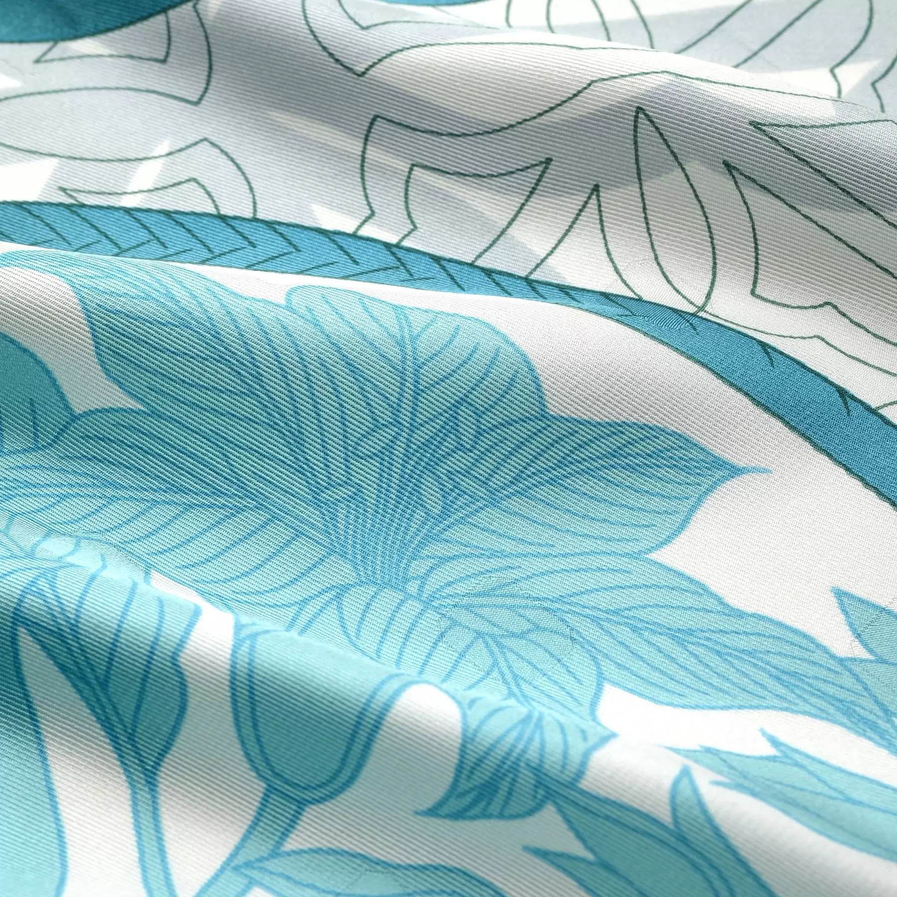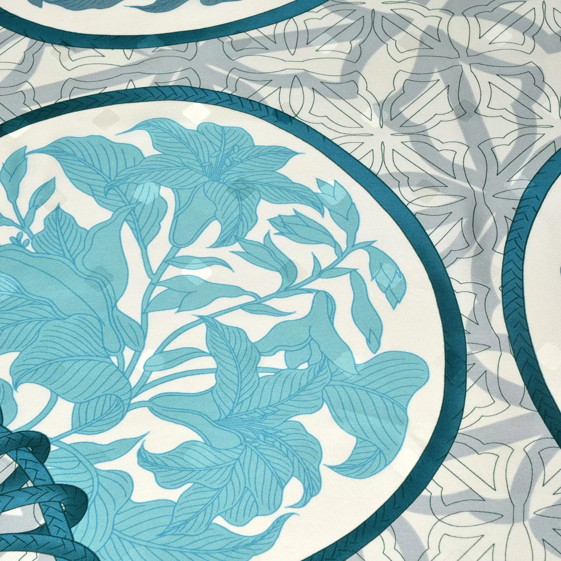 千總の紋にもある八角形を織り込んだスカーフのためのオリジナルの生地を開発。やわらかな風合いと上品な艶が、手で触るだけでも幸せな気持ちにさせてくれます。