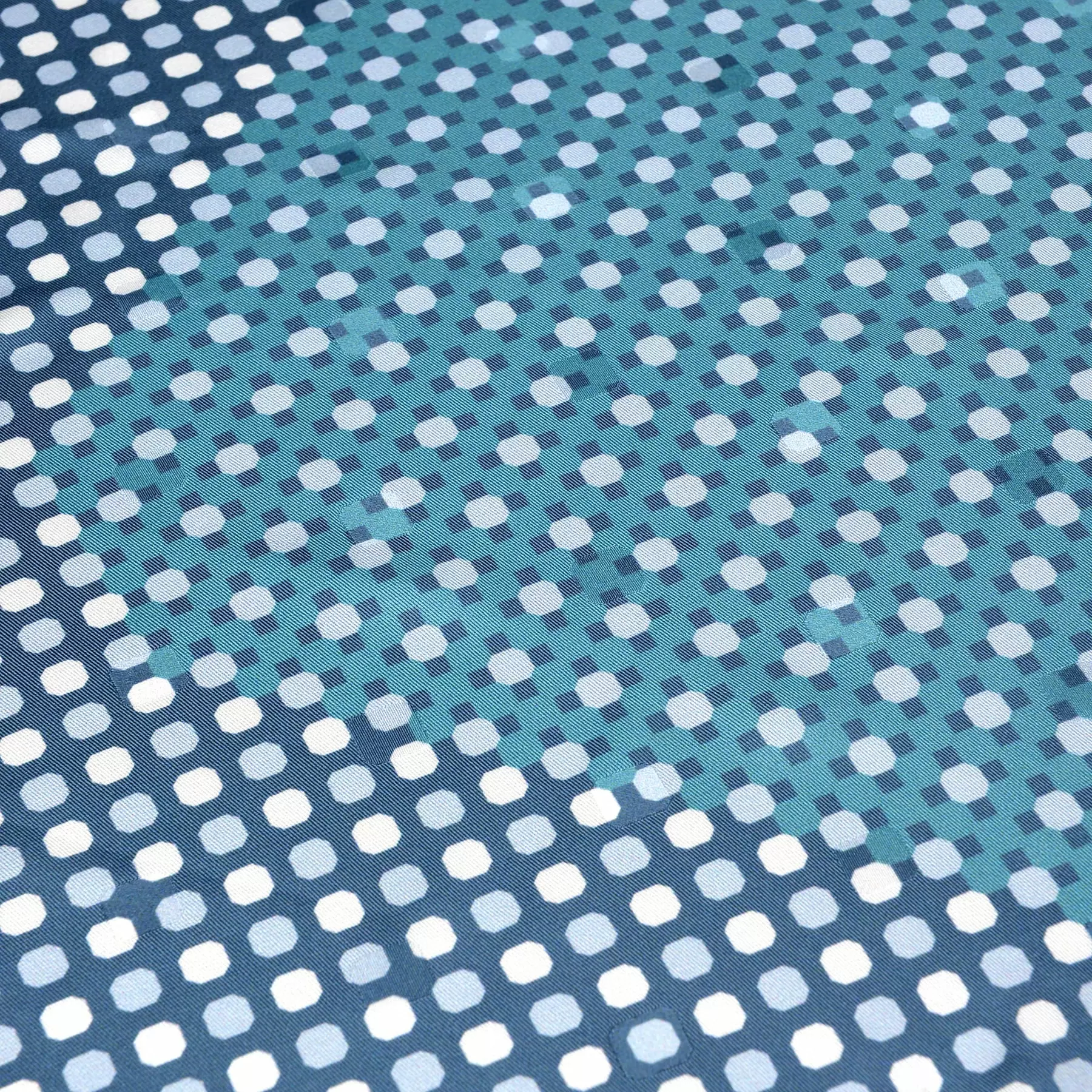 千總の紋である千切台の八角形を大胆にたくさん並べたスカーフ。ワントーンでありながら色彩には濃淡をつけ、巻いたときに楽しさを感じる一枚に。スカーフ全体を見れば、幾つもの八角形が重なって見えるように工夫されており、シンプルさの中にデザイン力の高さを感じさせるスカーフです。