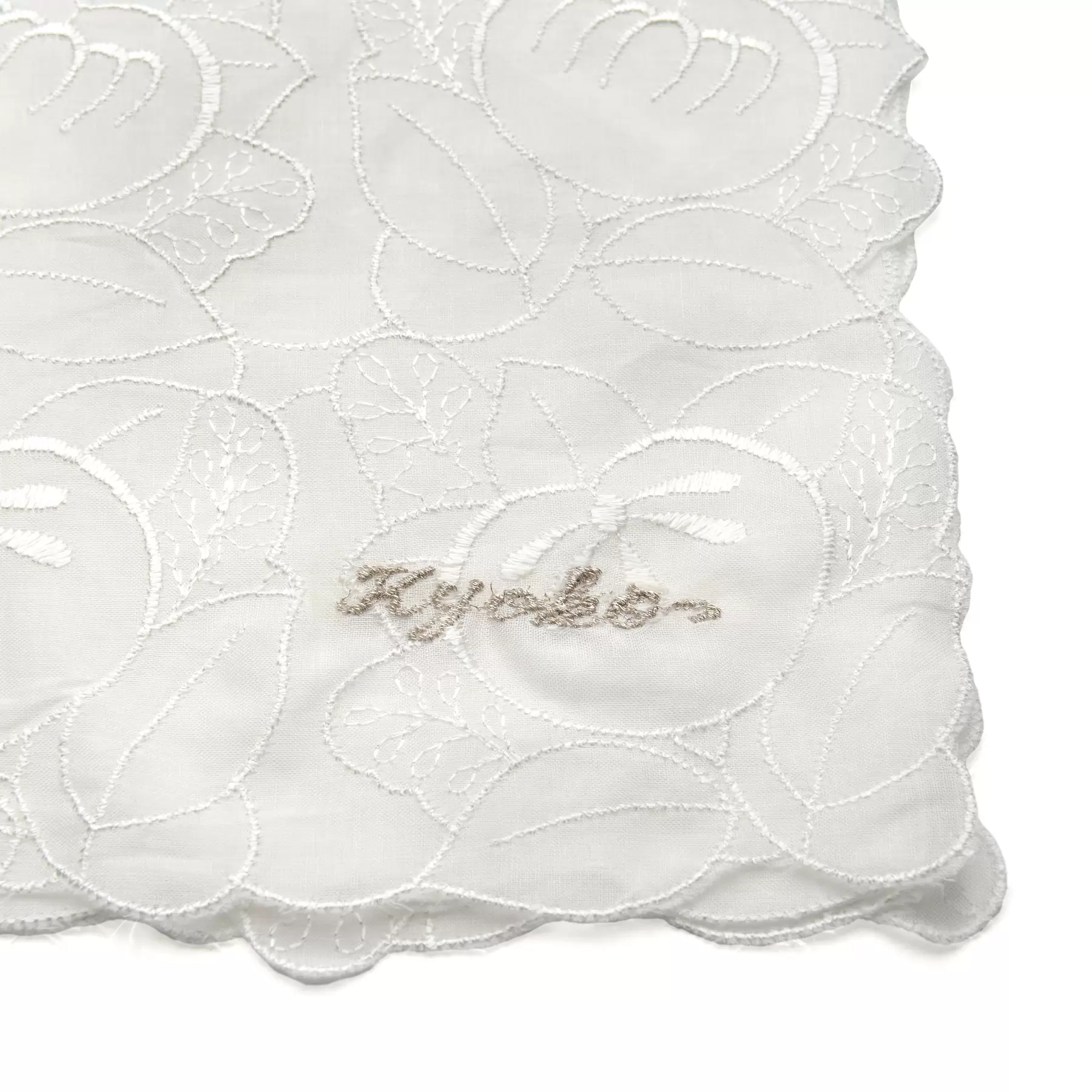 定番の白のハンカチは、ほんの少しグレーが入った落ち着いた色味です。