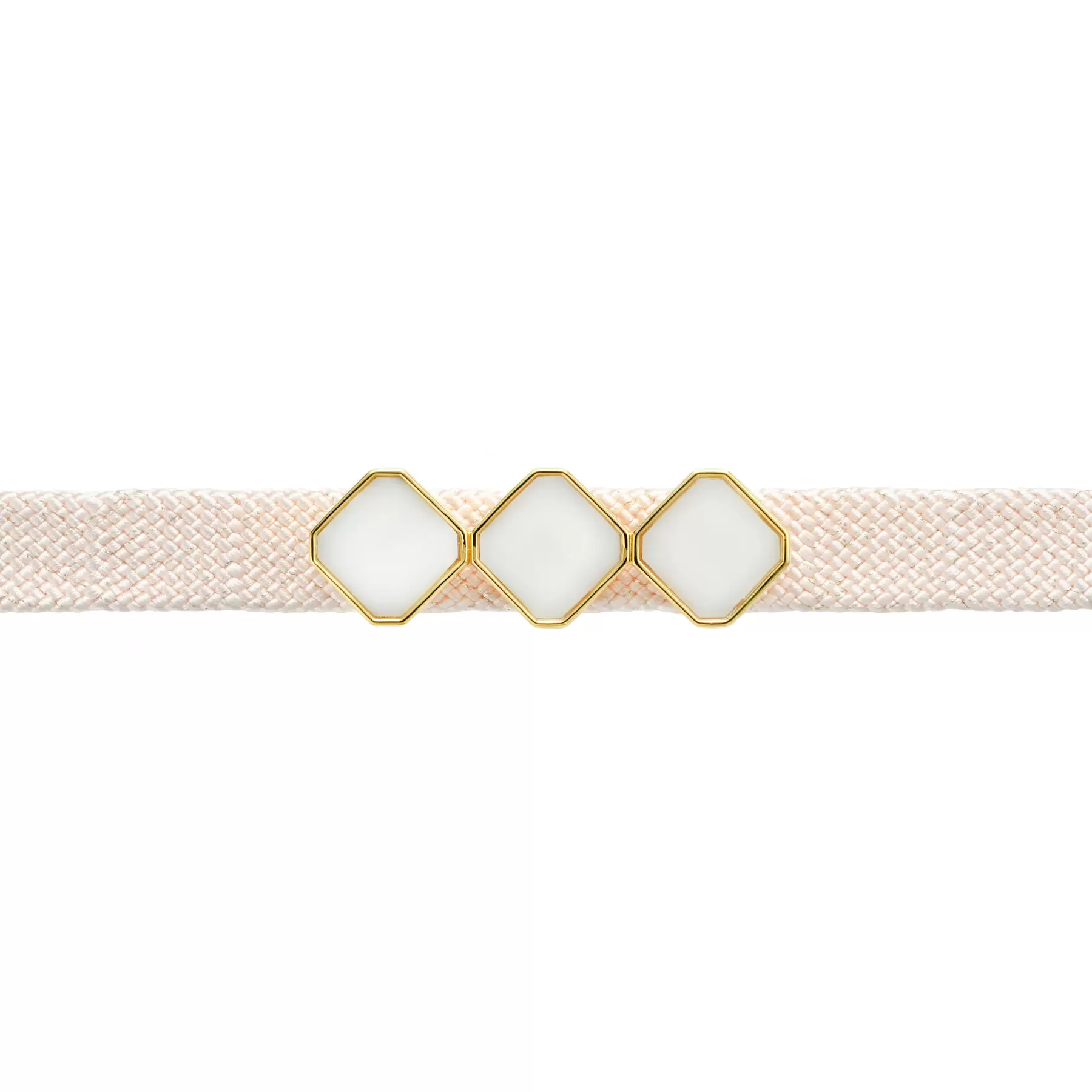 透明感のある白珊瑚と繊細な金の縁取りが可憐な、1点ものの帯留めです。