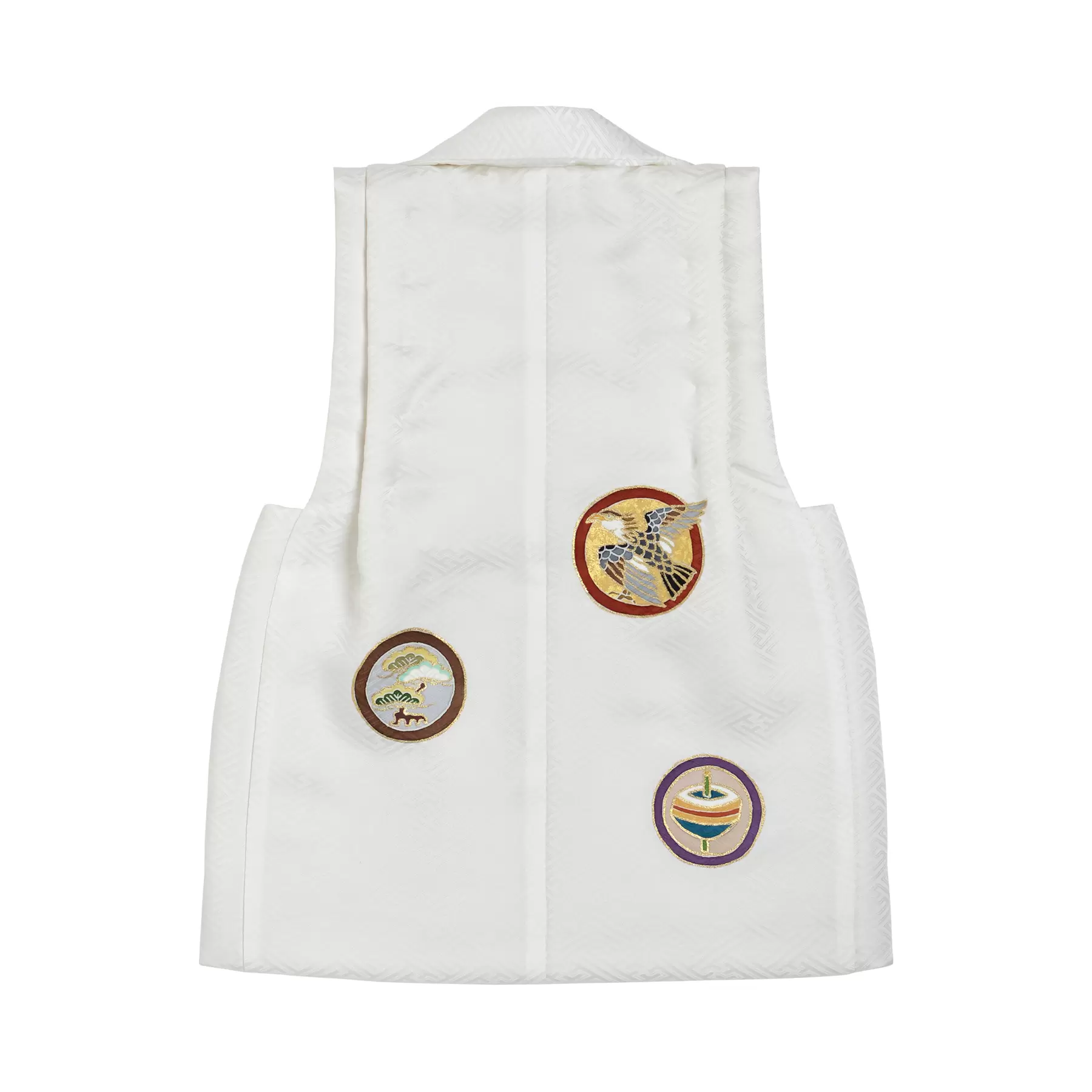 男の子の初着に合わせて作った被布です。黒や青、茶色などの初着のお色が美しく引き立つ地色を選び、衿の形と被布の房飾りもすっきりしたデザインにしました。お子様のご負担にならないよう軽い生地を使用し、綿を入れ、ふわりと柔らかくお仕立しています。