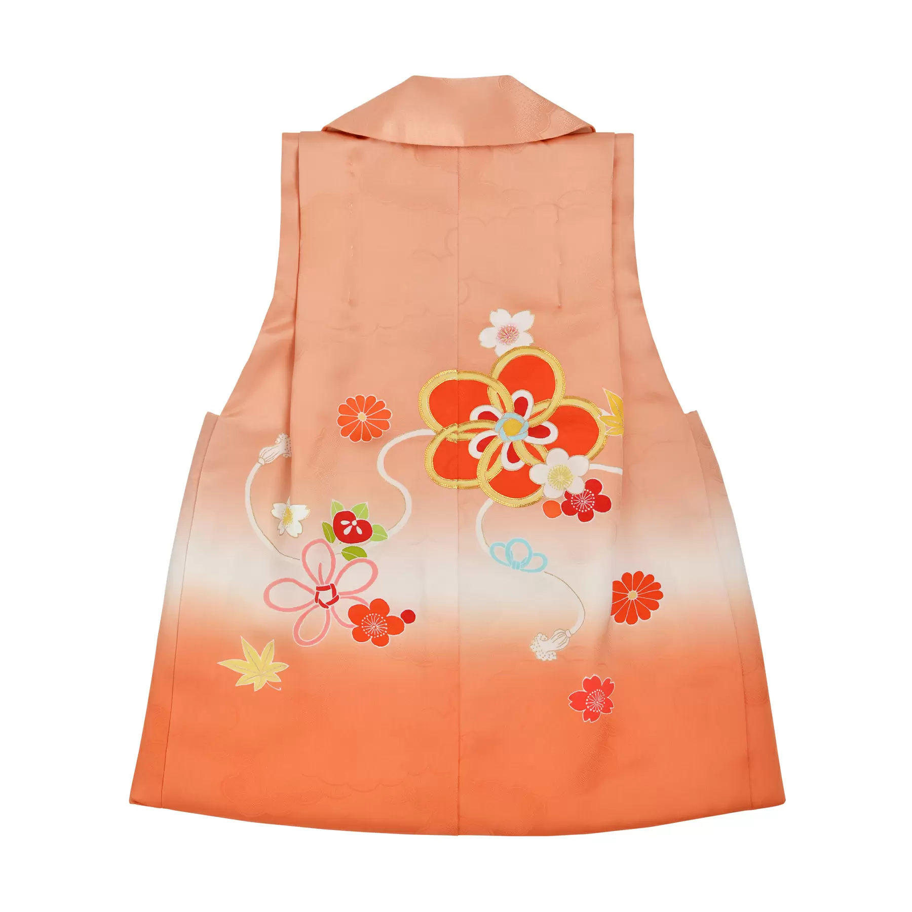 千總の被布は、お子様のご負担にならないよう軽い生地を使用し、綿を入れ、ふわりと柔らかくお仕立し、衿には可愛らしい飾り紐をお付けしています。