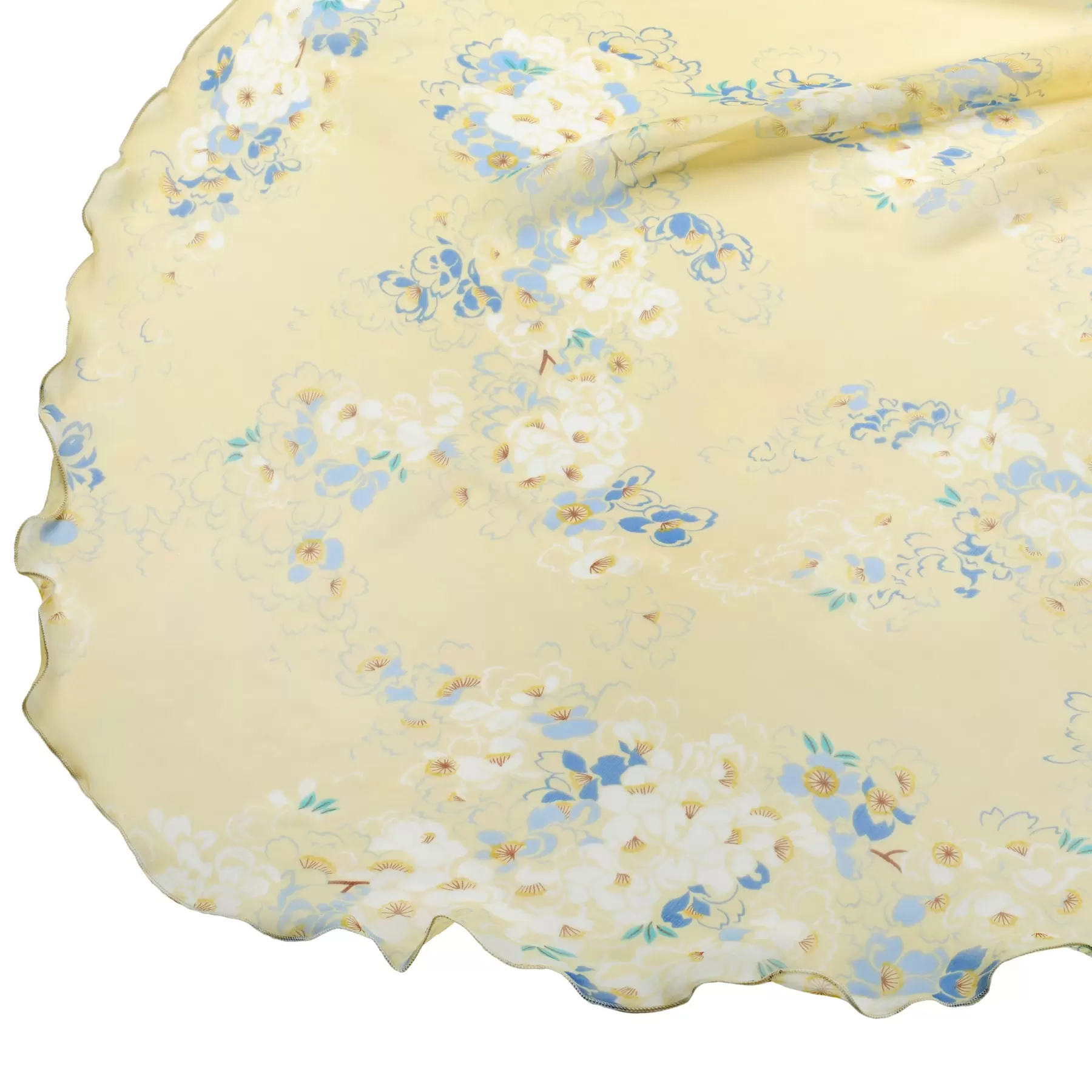 約35gという軽やかなシルクシフォン素材を用いたユニークな楕円形のスカーフです。どんな巻き方もきれいに決まるように計算され尽くした角のない形と、動きのある軽やかな表情を生み出すやさしく波打つ縁の仕上がりが、装いに華やぎをプラスしてくれます。