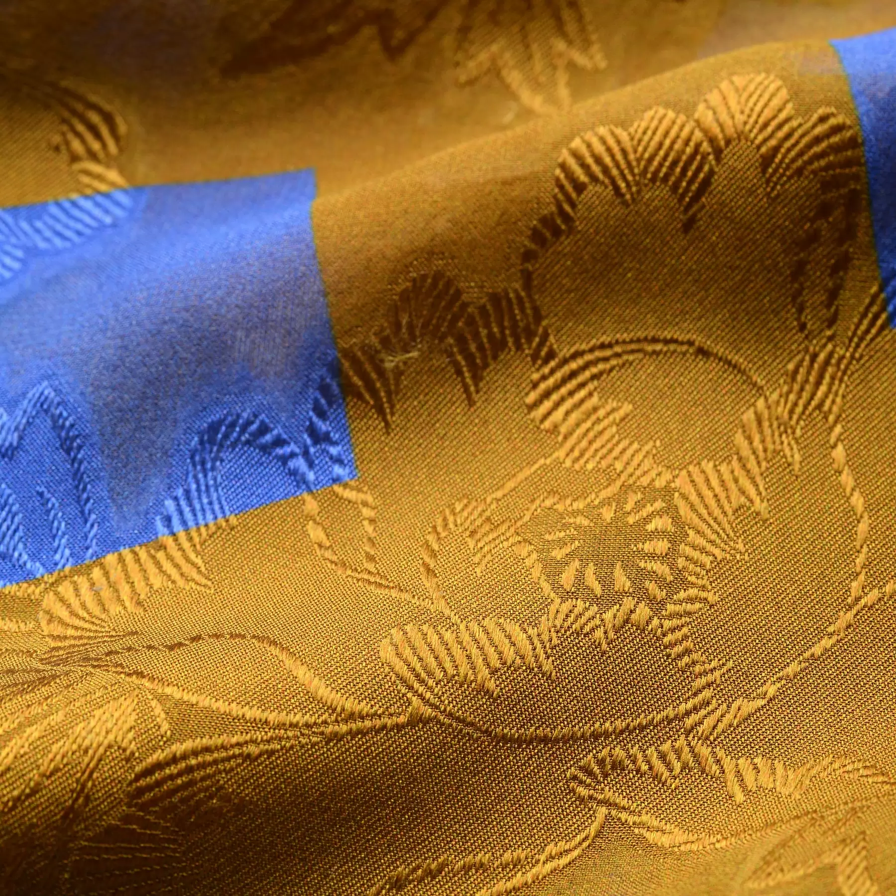ストール全体に淡くグラデーションをかけ、柔らかさのあるカラーリングに。地紋に織り込まれた牡丹の花が上品に浮かび上がります。細長い形状で巻きやすく、柔らかいシルクの感触が心地良い一枚です。