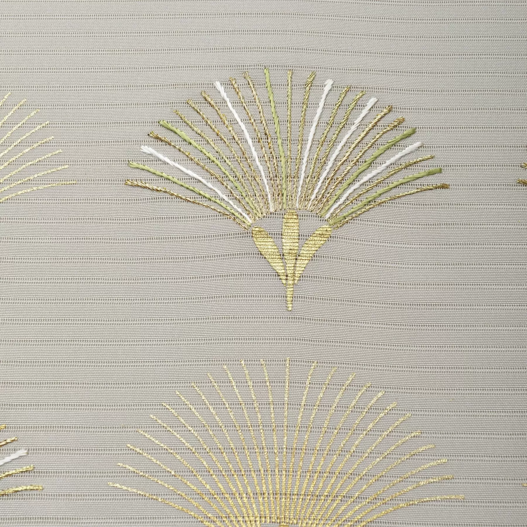雅楽の舞曲にある「青海波」の装束に使われていたところからその名がついたと言われる青海波文様。永遠の幸福を願う吉祥文様である青海波を、松をモチーフに表現しました。シンプルなデザインに、金箔や金糸、カラフルな色糸がアクセントになっています。和のお稽古に最適な染め帯です。