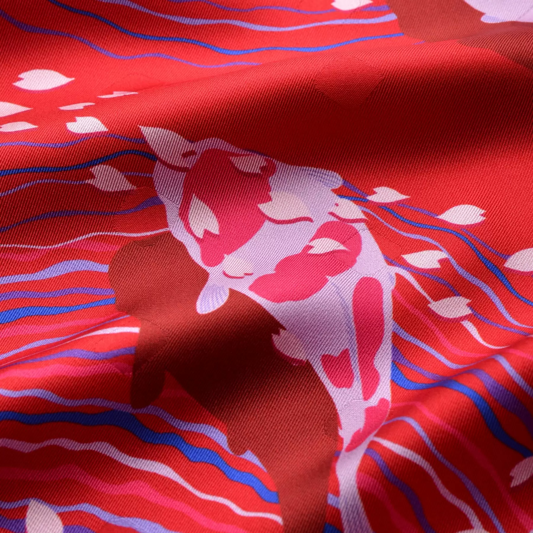 鯉は竜門と呼ばれる急流を登りやがて龍になると言われ、出世魚として古くから尊重されてきた吉祥文様です。ゆったりと泳ぐ鯉と水面に浮かぶ桜。自然の美しさに魅せられる優美なデザインです。