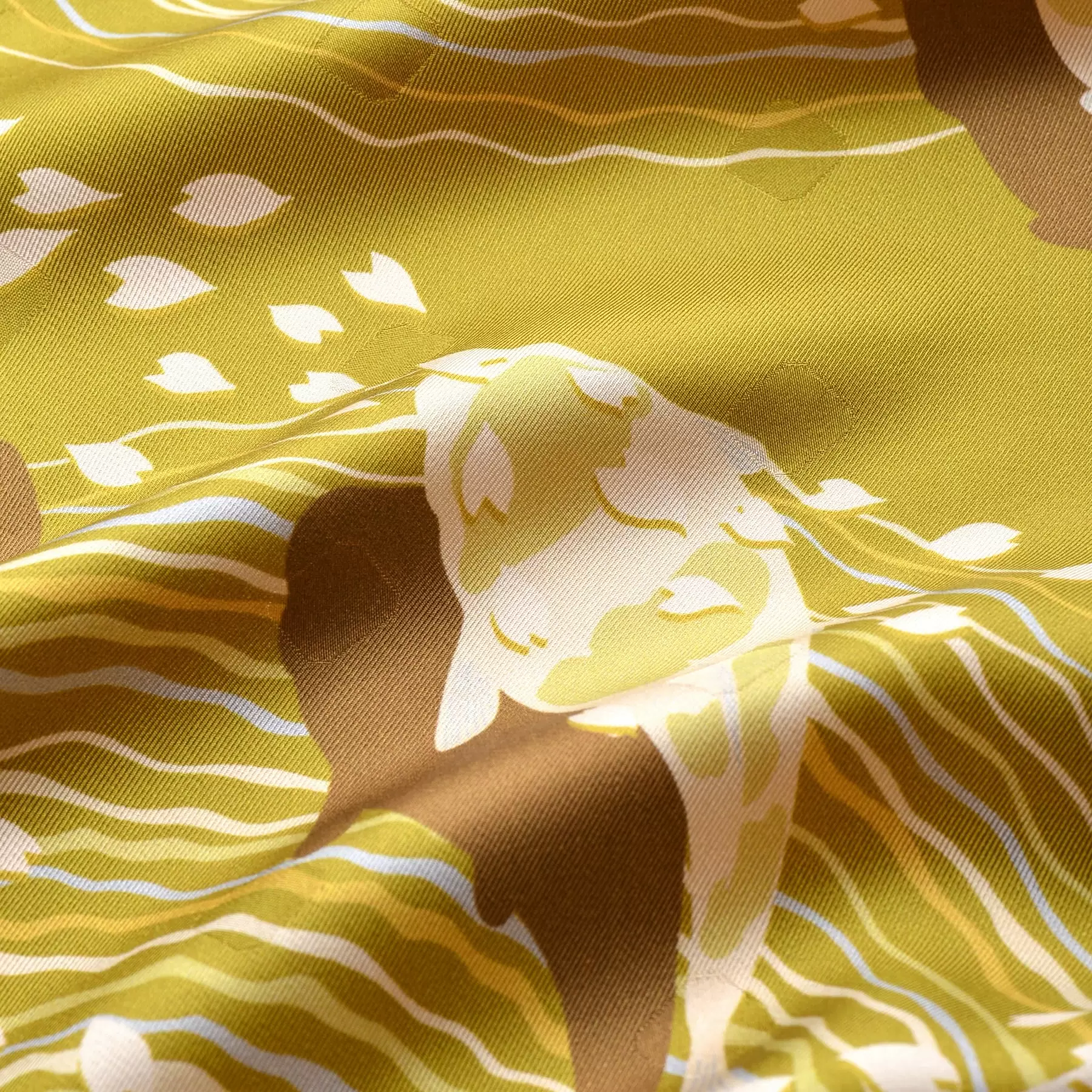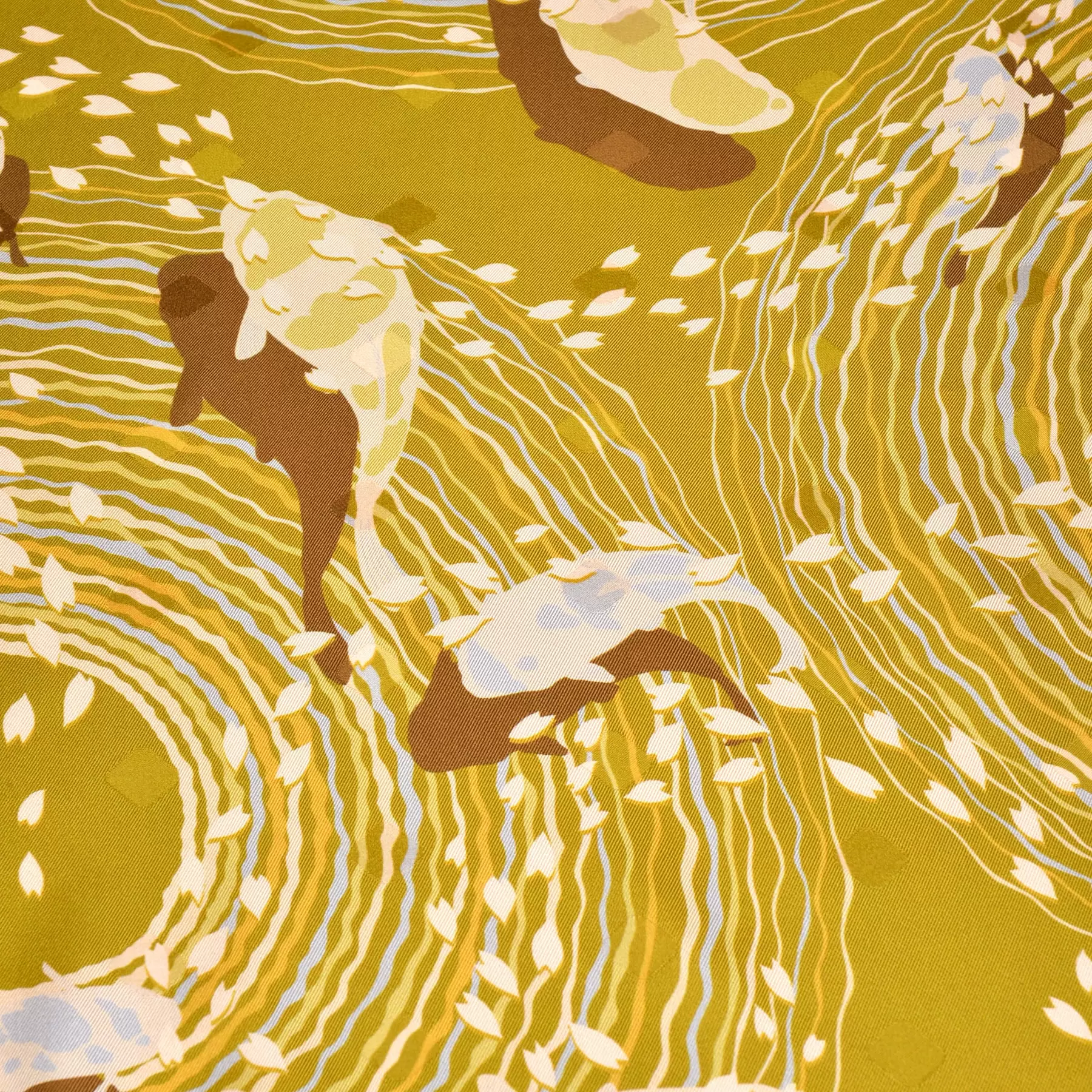 鯉は竜門と呼ばれる急流を登りやがて龍になると言われ、出世魚として古くから尊重されてきた吉祥文様です。ゆったりと泳ぐ鯉と水面に浮かぶ桜。自然の美しさに魅せられる優美なデザインです。