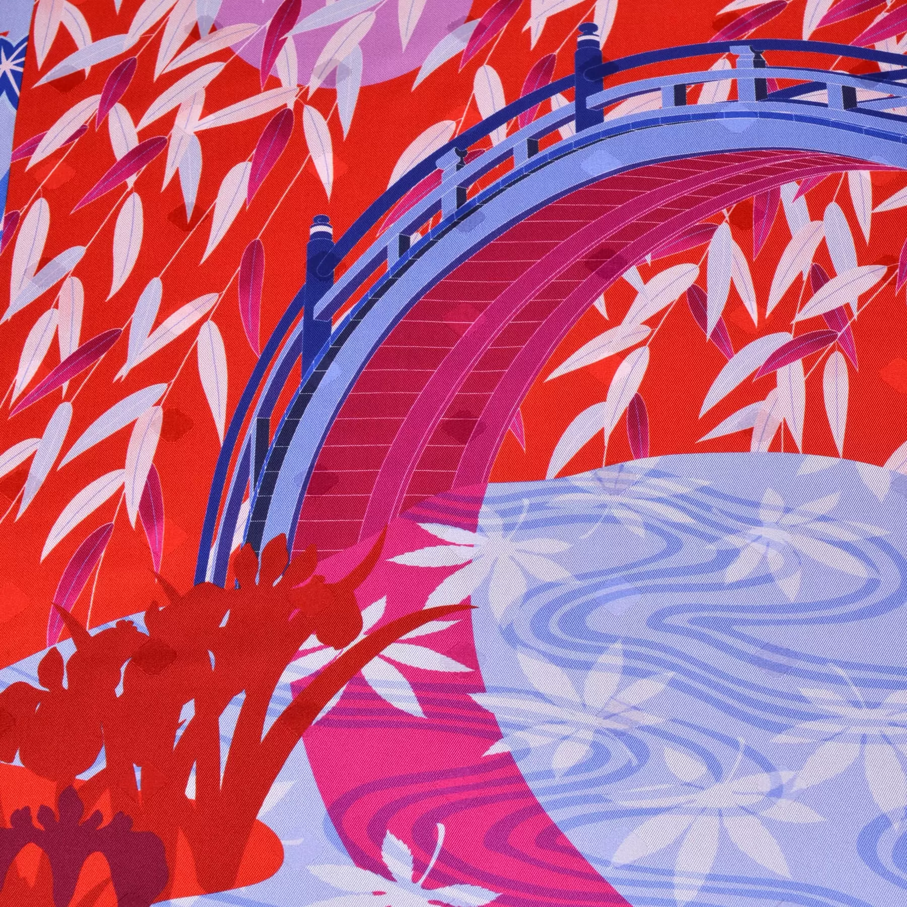 満月の月の光に照らされた太鼓橋が水面に反射して、まるで橋が水の中に浮かび上がったような耽美なデザイン。水辺と空には春秋の草花が入り乱れ、いつともどことも言えない夢の中のような景色が広がります。絵画のように広げて眺めたくなる一枚です。