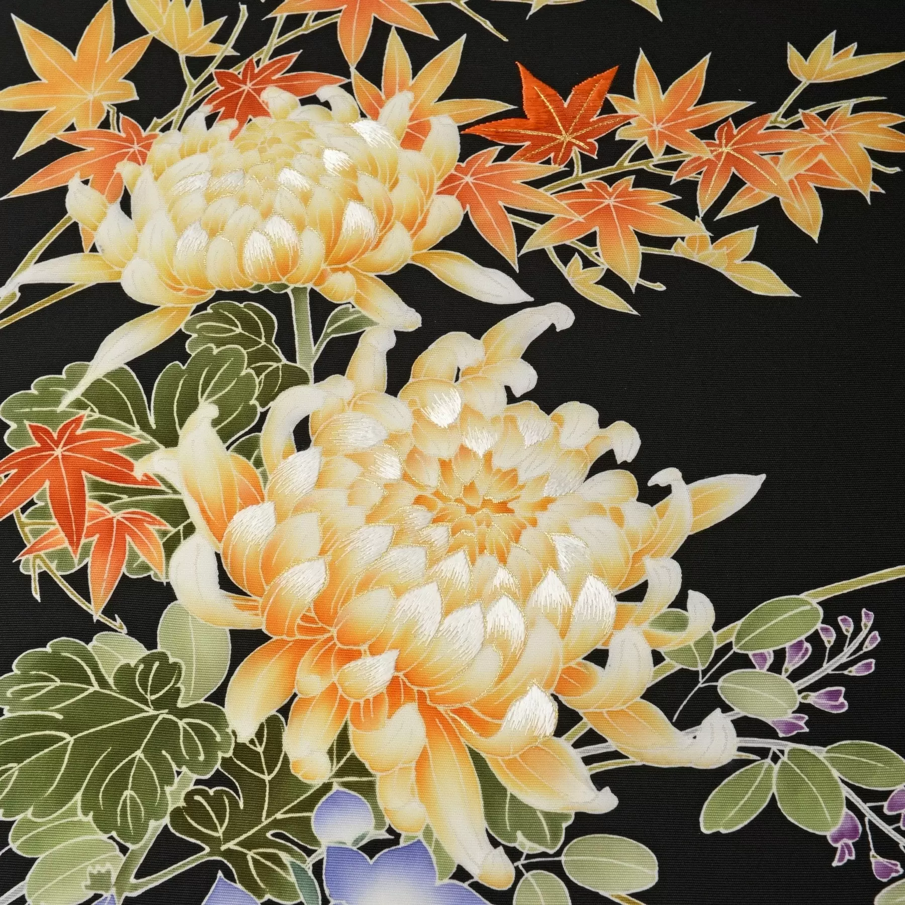 千總が明治24年に刊行した日本画家、今尾景年の画集「景年花鳥画譜」から、今尾景年の作風の特徴である花々の生命力をテーマにデザインしました。お太鼓のキャンパスいっぱいに、大輪の菊に桔梗、萩、紅葉と、秋の持つ美しさが生き生きと描き出されています。