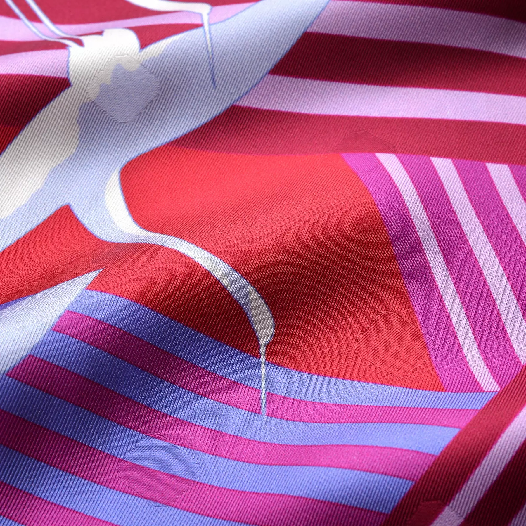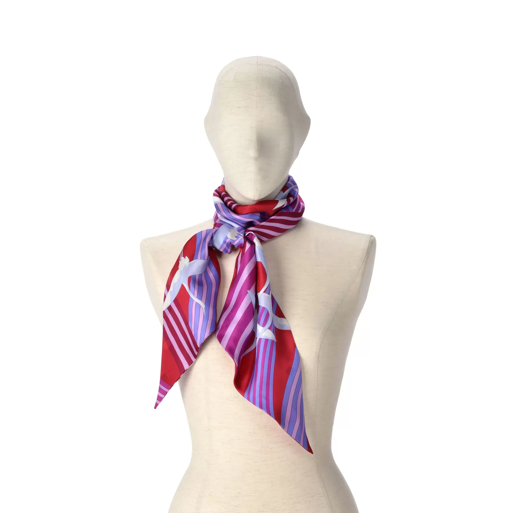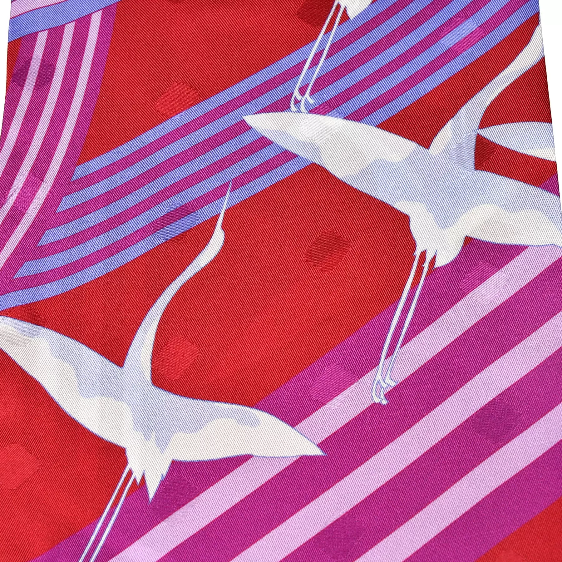 直線と曲線が美しく混ざり合う一枚。曲線は滝を表し、水の間を伸びやかに舞う鶴を表現しました。裏表のない細長い剣先型のスカーフは巻くだけで形になり、スタイリングのアクセントとして手軽に取り入れられるアイテムです。