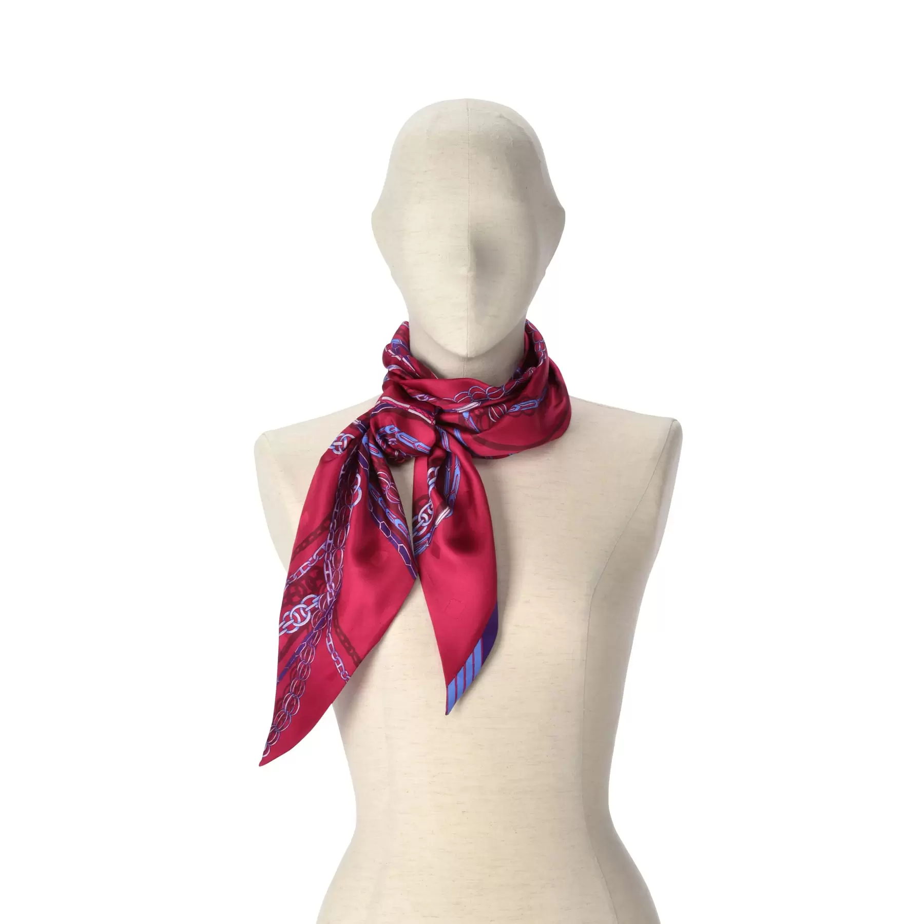 京都の町でよく見かける鎖樋をモチーフにしている一枚。水中に漂っているような優雅なデザインは動きがあり、生地の柔らかさを一層心地よく感じさせてくれます。裏表のない細長い剣先型のスカーフは巻くだけで形になり、スタイリングのアクセントとして手軽に取り入れられるアイテムです。