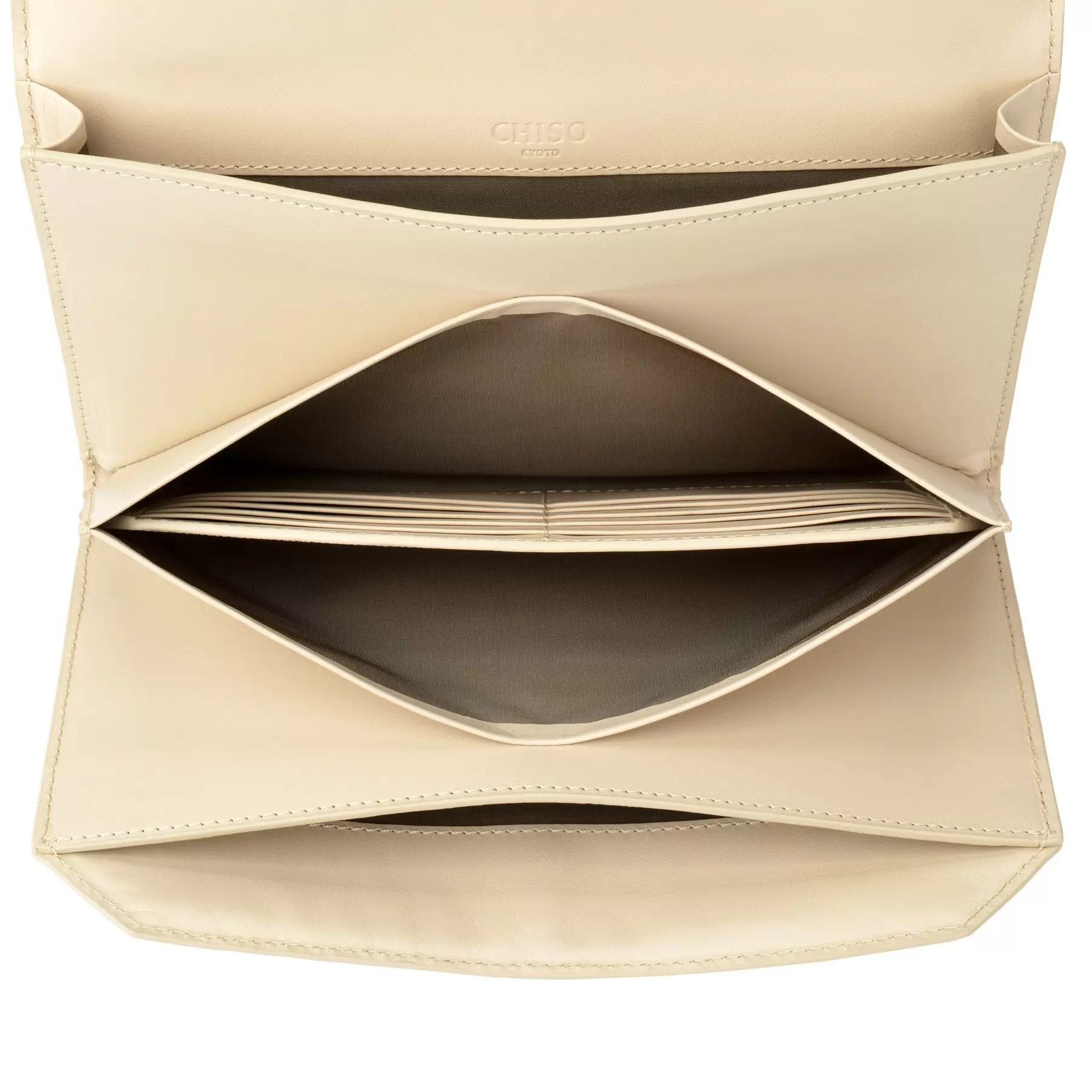 大きく開く3つの内ポケットと背面のポケット、取り外し可能なカードホルダーなど、機能面での使いやすさも考えました。斜めがけできるショルダーを付ければ、カジュアルにも楽しめます。所々に現れる八角形が遊び心を添えてくれます。