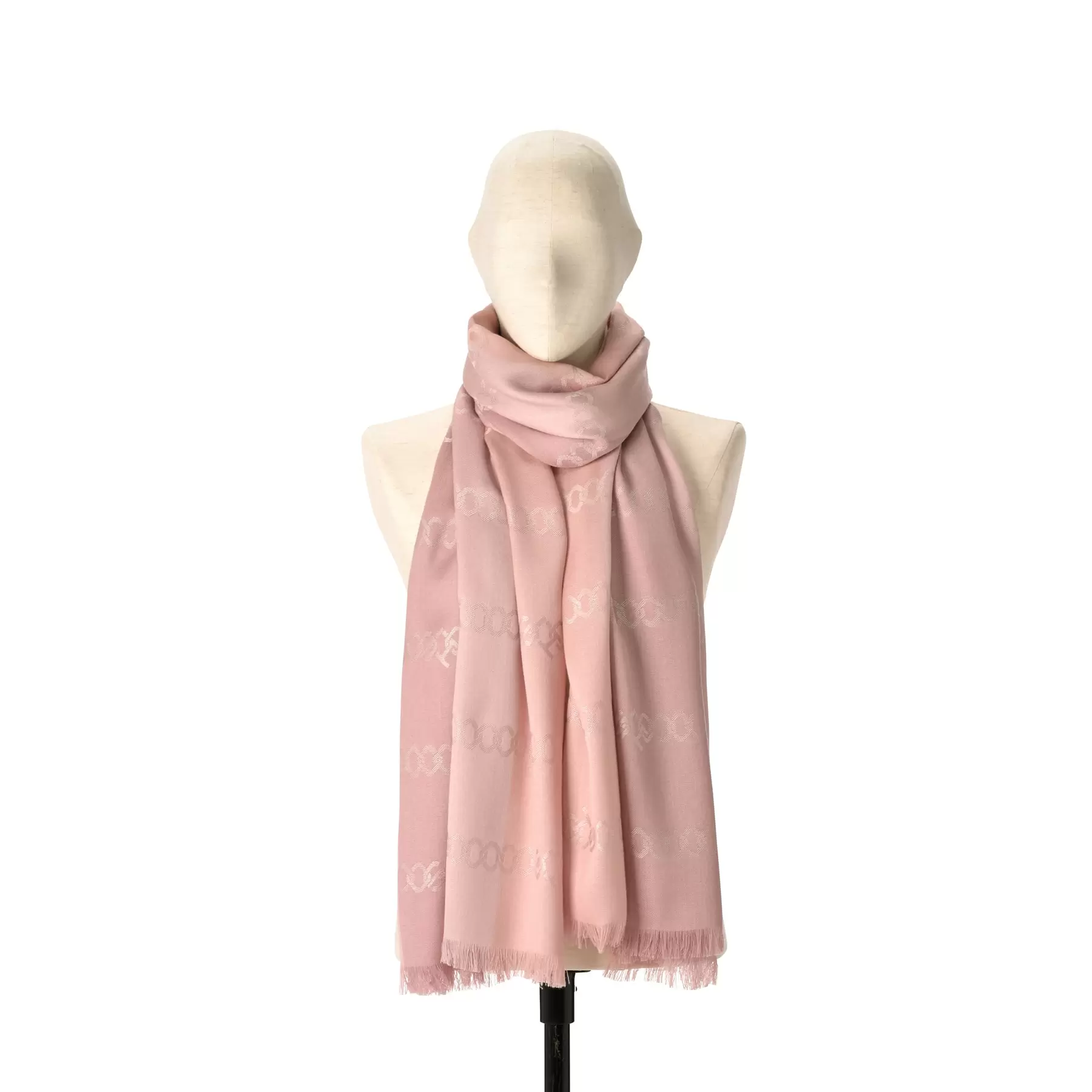 CHISOのモノグラムが織り込まれたジャガードのシルクウールストール。光沢感と柔らかさの上質素材は男女問わずお使いいただける一枚です。美しくスタイリングできるよう裏面にも染めをほどこしました。シンプルなカラーリングでありながら濃淡をつけることで、巻いた時に単調にならない工夫がされています。