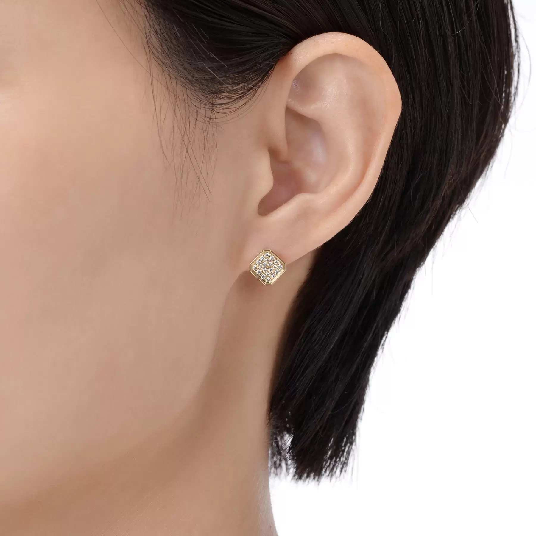 さりげない存在感が出るように、ピアスが耳たぶから少しだけ出るようにデザインしています。きものとのコーディネートも楽しめます。
