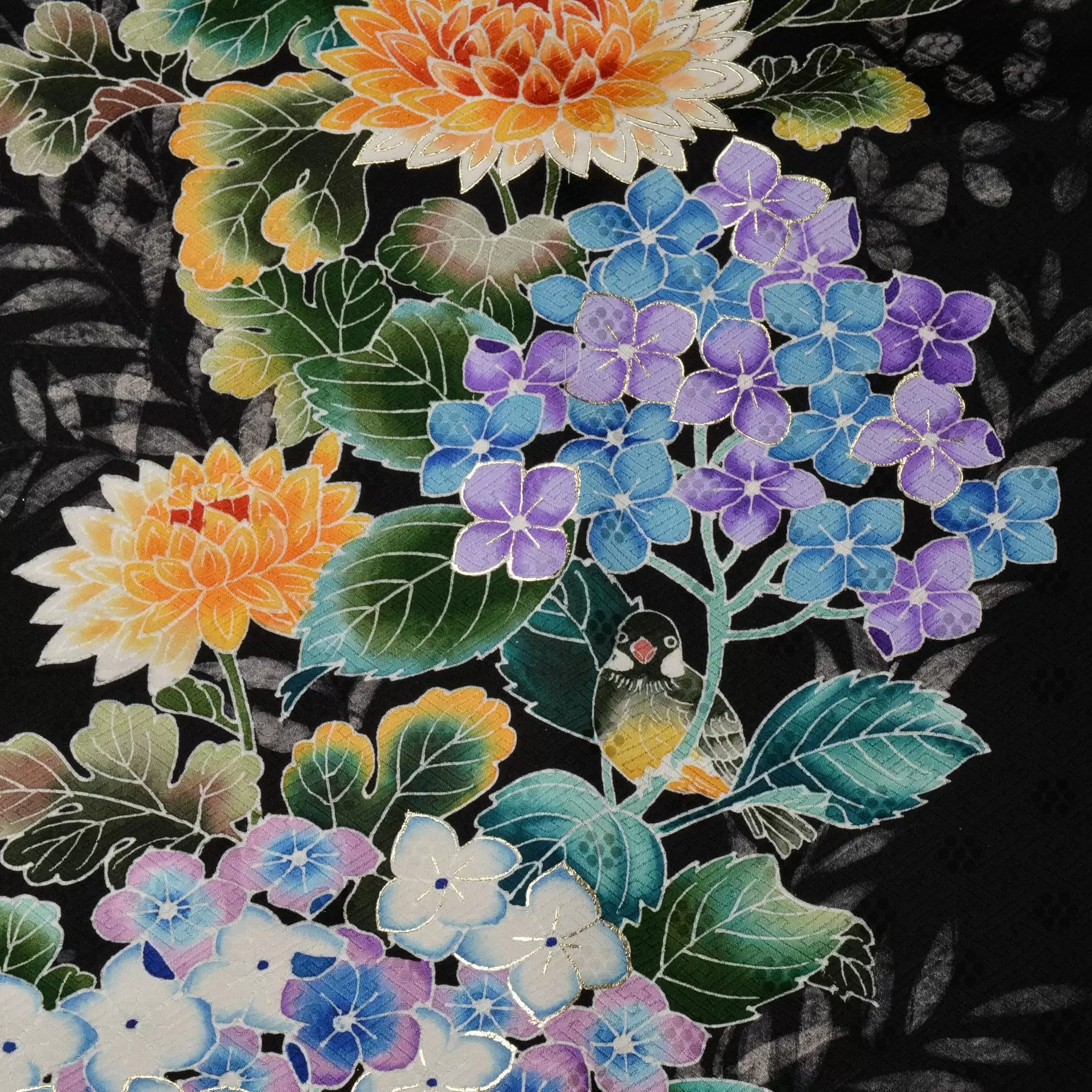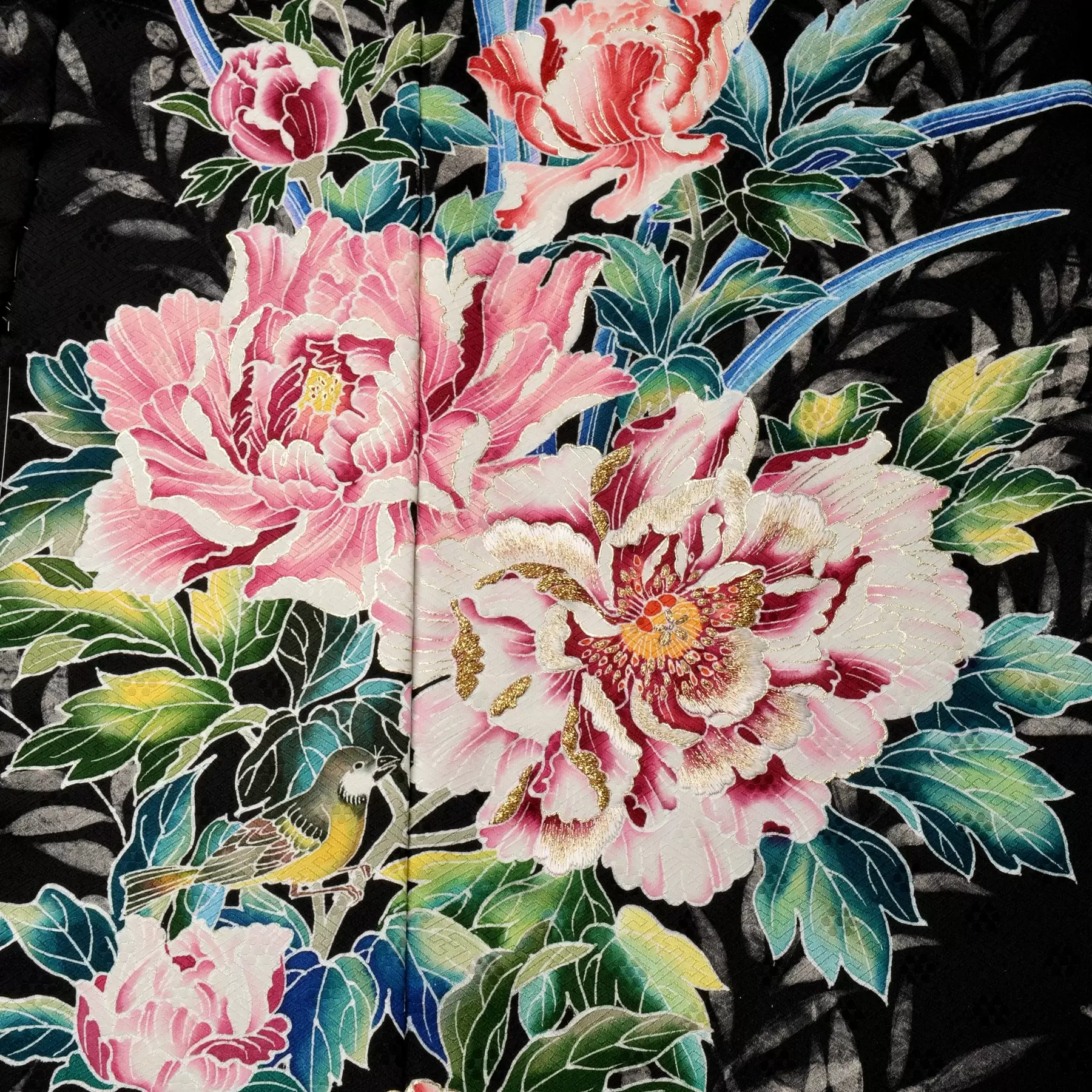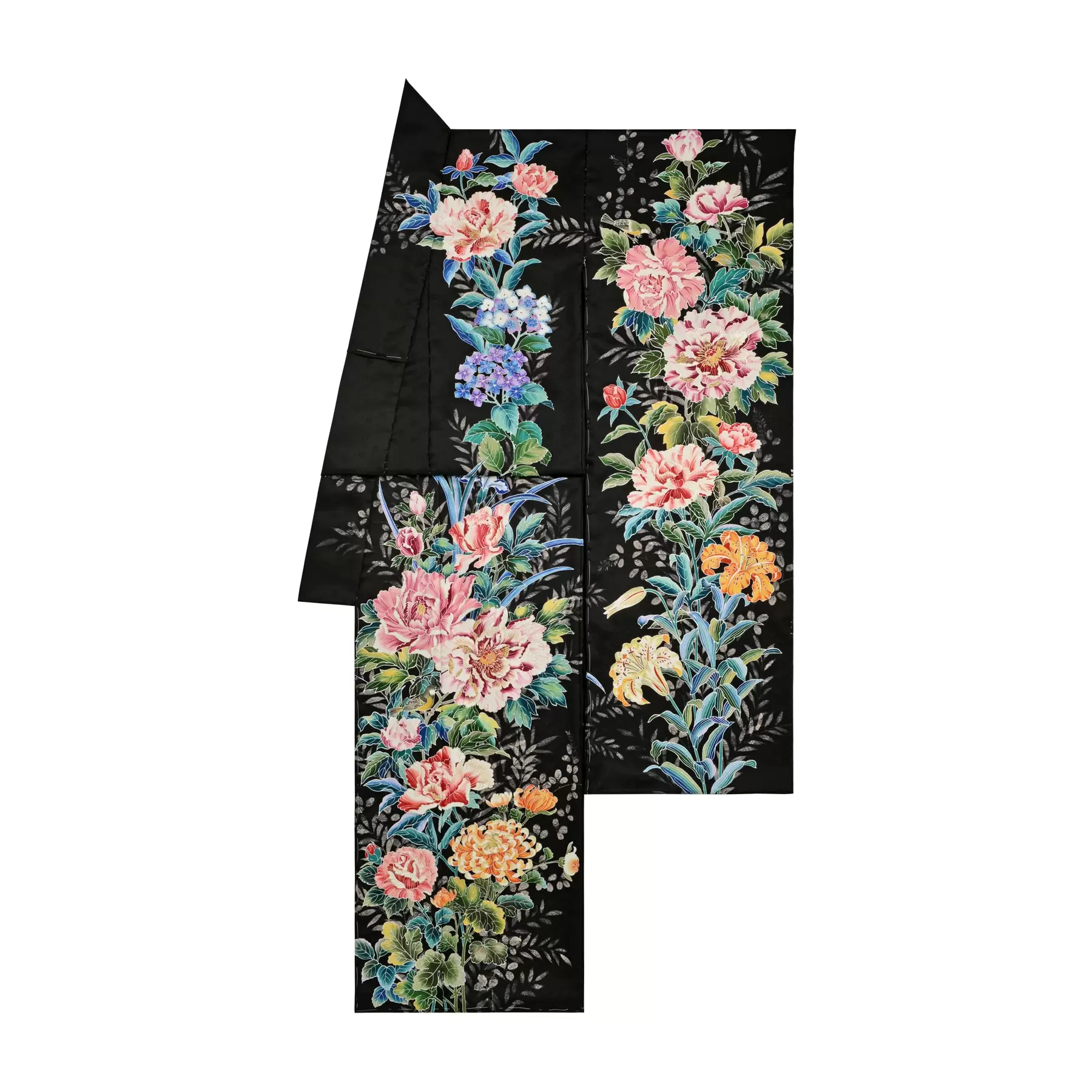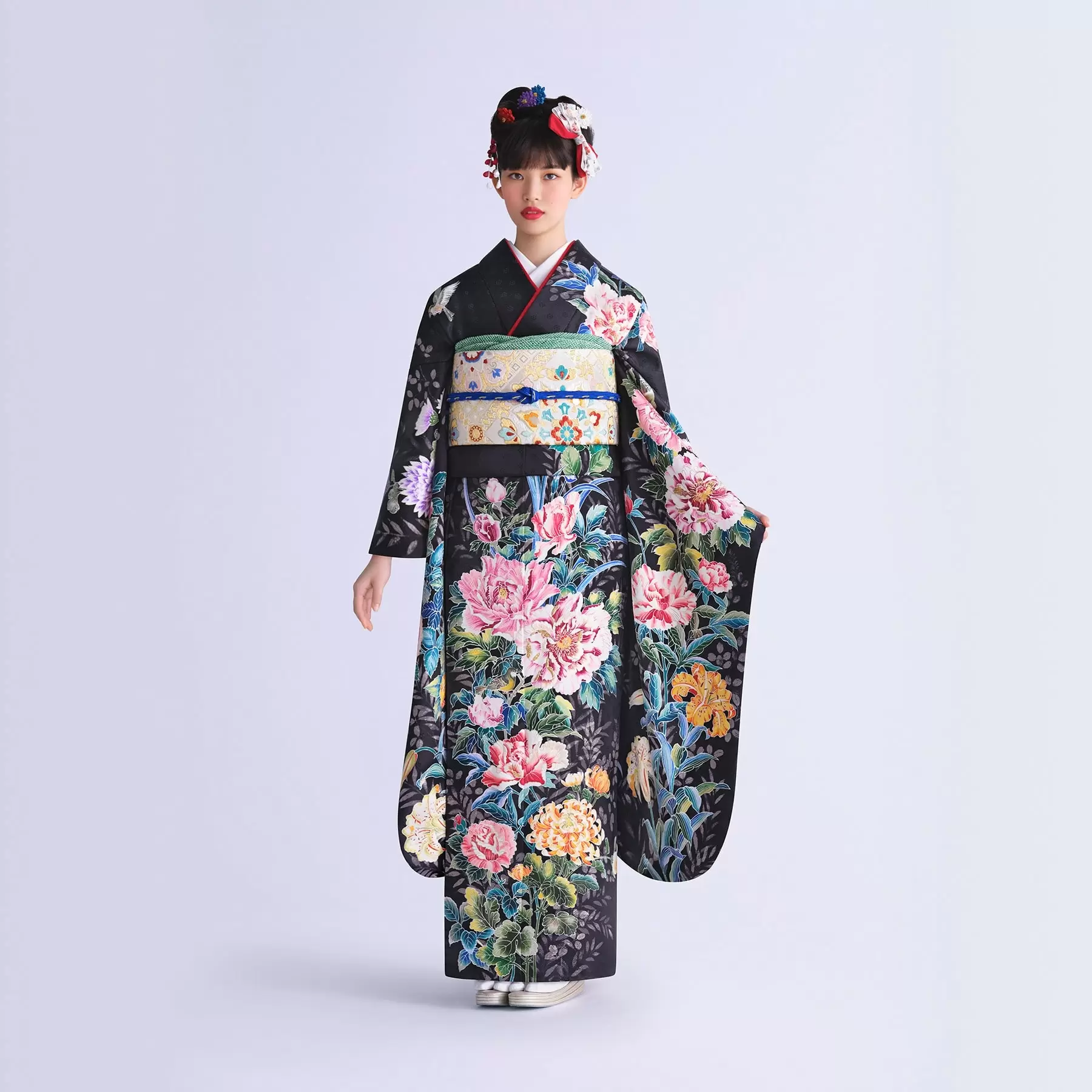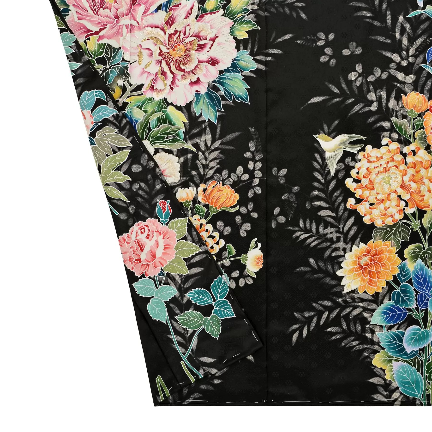 自然の生命力の力強さや瑞々しい花の色彩、多彩な顔を見せてくれる光、そして鳥たちの可愛らしさ。「花と鳥と」の第一弾となる今回のコレクションのコンセプトを表現した図案をモチーフにした一点ものの振袖です。