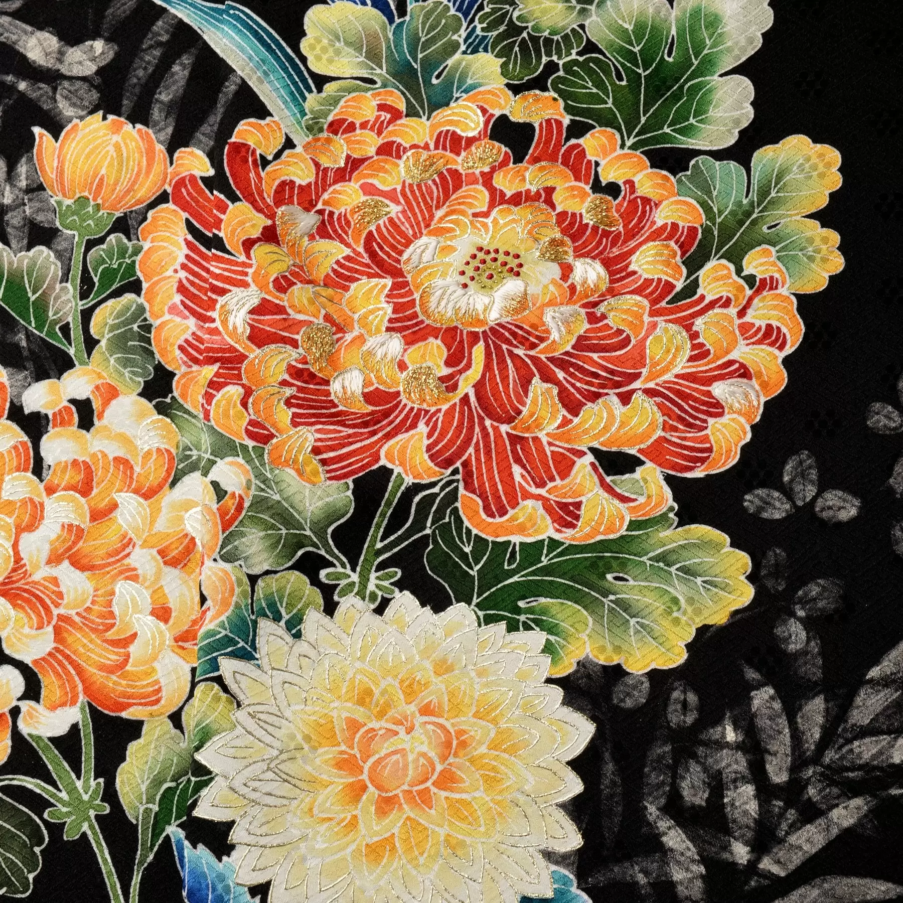 縦に立ち上る構図で自然の伸びやかさと壮大さを、花々の鮮やかな色彩で生命の輝きを表現しています。花々の光と影の描き方、一枚一枚の葉の色の移り変わりを極限まで突き詰めた先に辿り着いた、暗闇の中から浮かび上がる悠久の美の世界をお楽しみください。