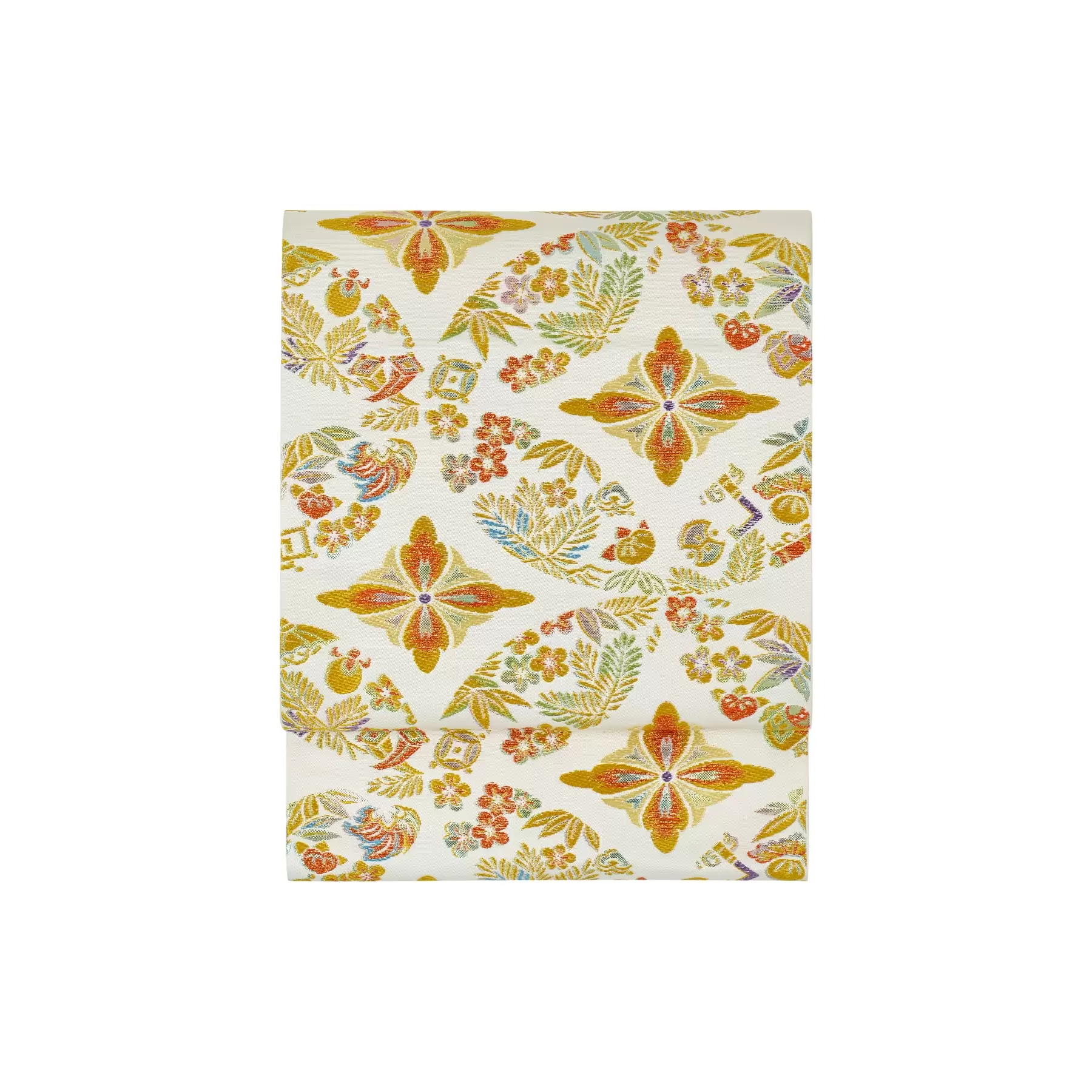 明るいお色や、束ね熨斗、七宝というおめでたい文様が、祝福の気持ちを表してくれています。
