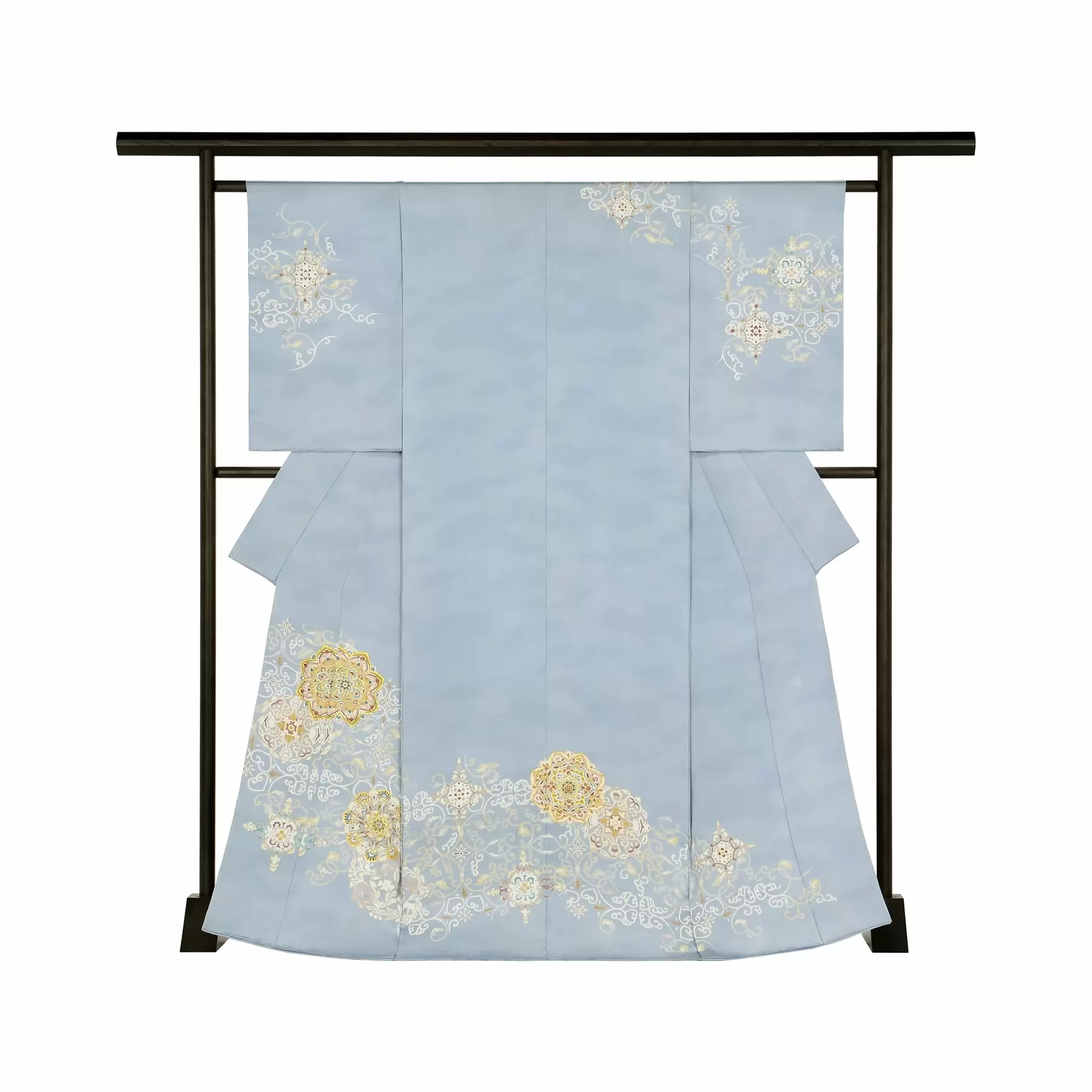 奈良・東大寺正倉院に伝わる工芸品に多くみられる文様の中でも、優美でフォーマルな場に相応しい華紋は、晴れの日の式典やパーティーに安心してお召しいただける訪問着です。