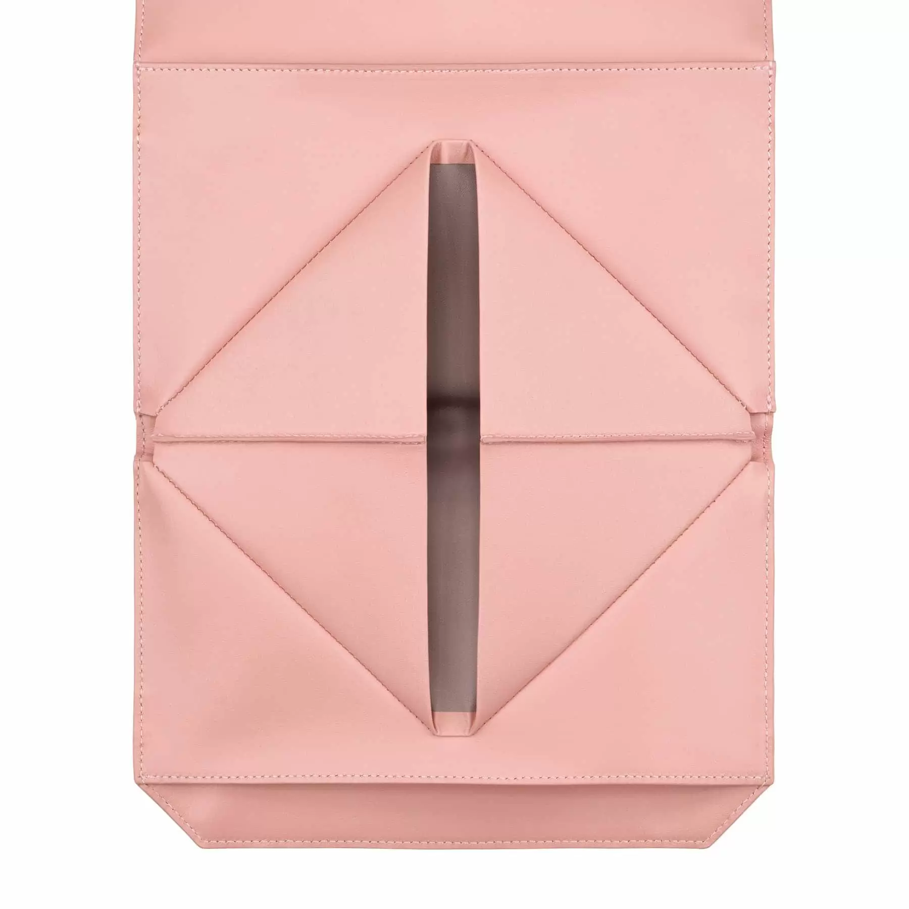 大きく開く3つの内ポケットと背面のポケット、取り外し可能なカードホルダーなど、機能面での使いやすさも考えました。斜めがけできるショルダーを付ければ、カジュアルにも楽しめます。所々に現れる八角形が遊び心を添えてくれます。