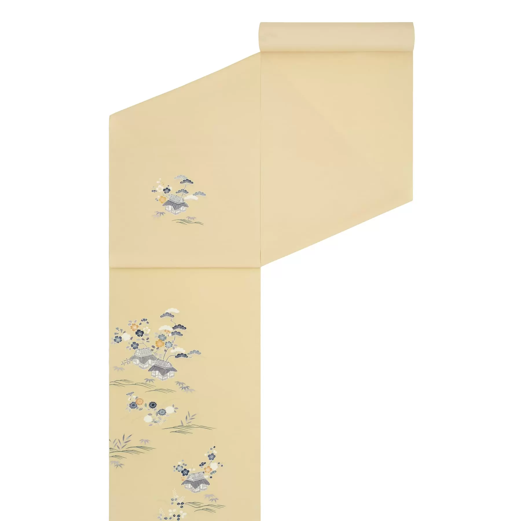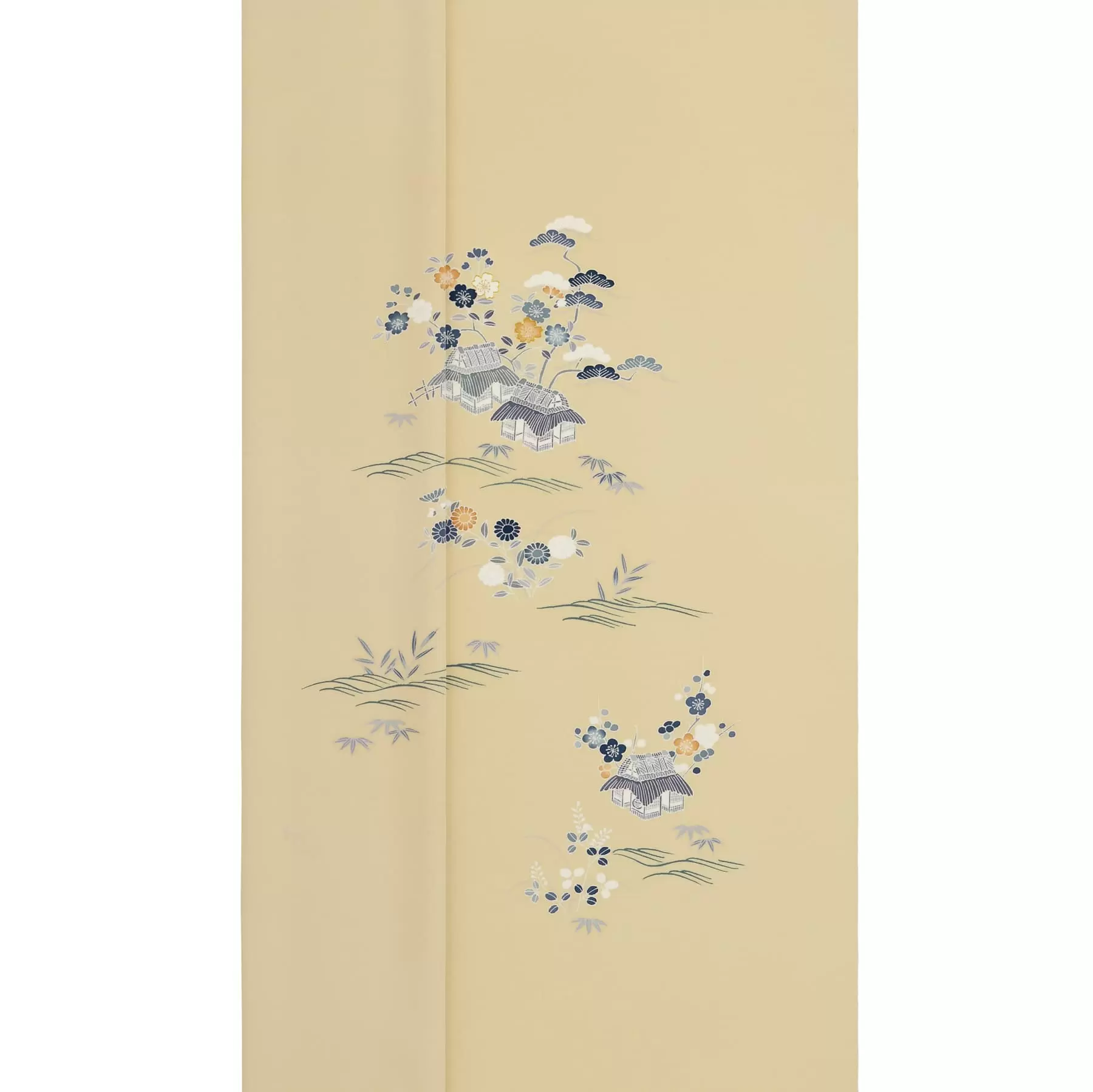 深みのあるベージュの地色に、上品な雰囲気が漂う茶屋辻文様をデザインしました。藍の濃淡を多用し文様を細やかに描き上げる手法は、江戸時代の衣裳美にもみられる伝統的な色彩感覚を踏襲しています。