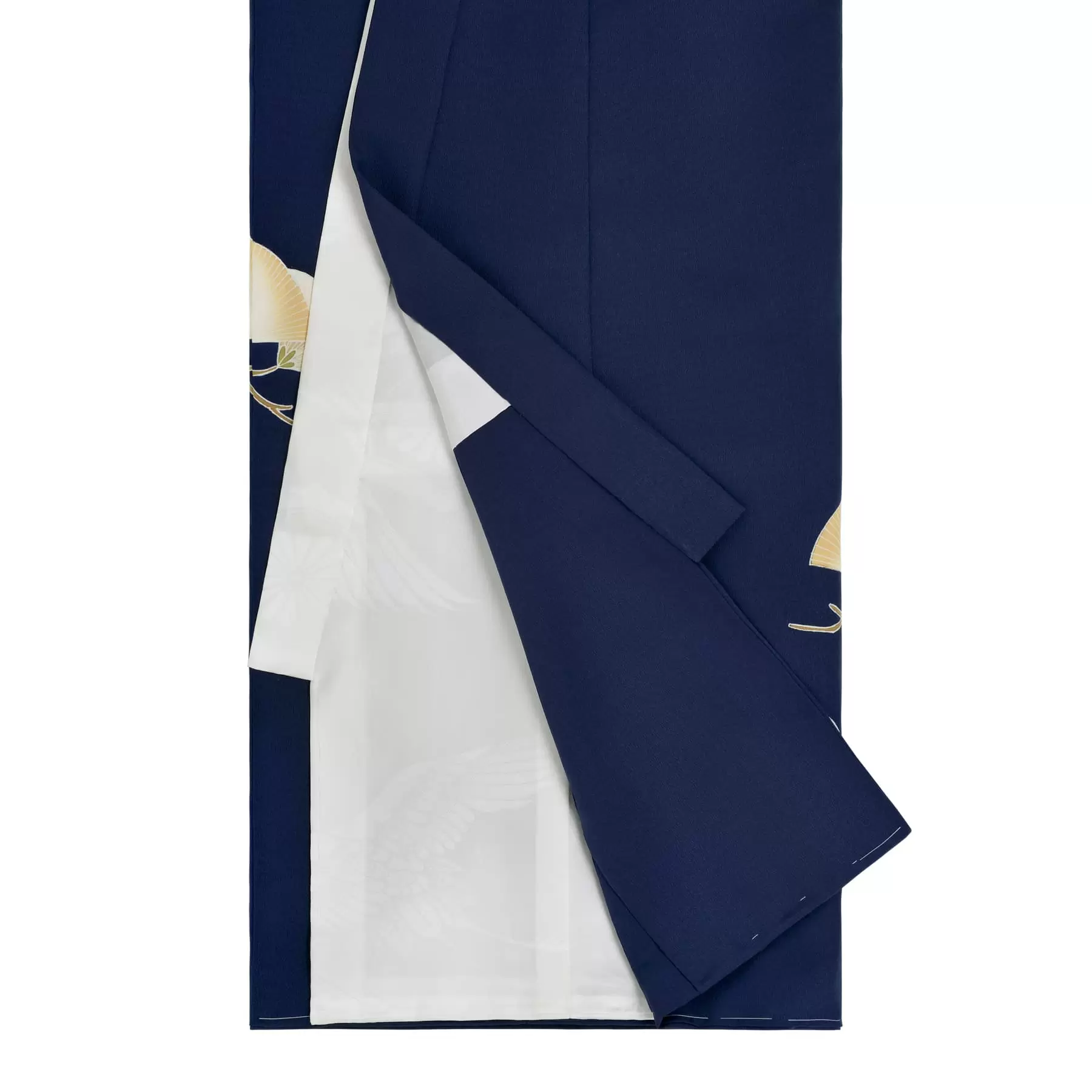 千總の初着は上着、下着ともに全て正絹で作られています。下着は白で、お袖にはブルーの地色の付袖が付いており、広袖にてお仕立てをしております。付け紐には紐飾りがされています。紋を入れてお届けいたします。