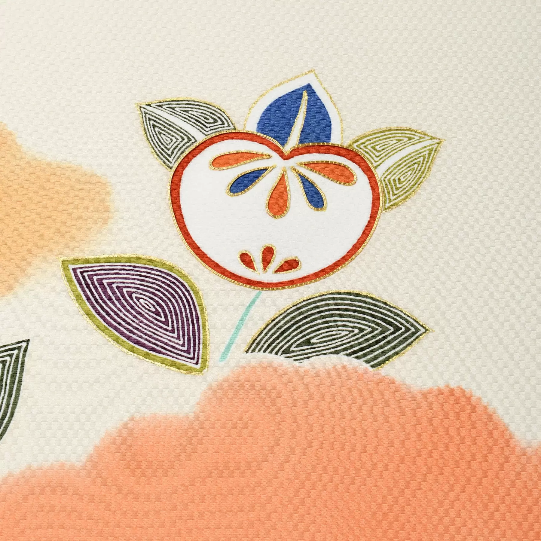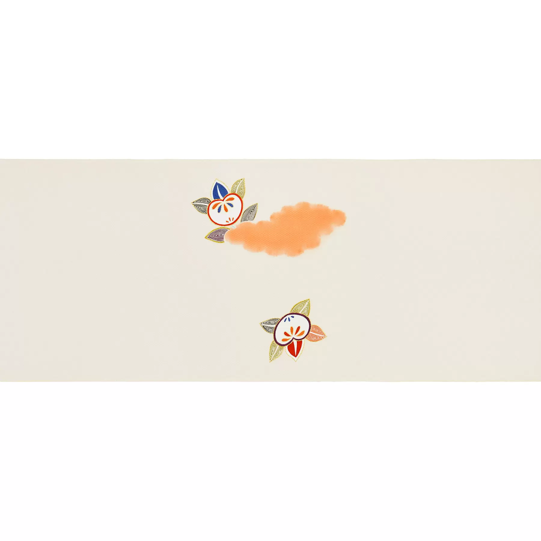 雲間にのぞく可愛らしい橘。明治時代に千總が得意としていた型友禅の裂地に残されているデザインです。