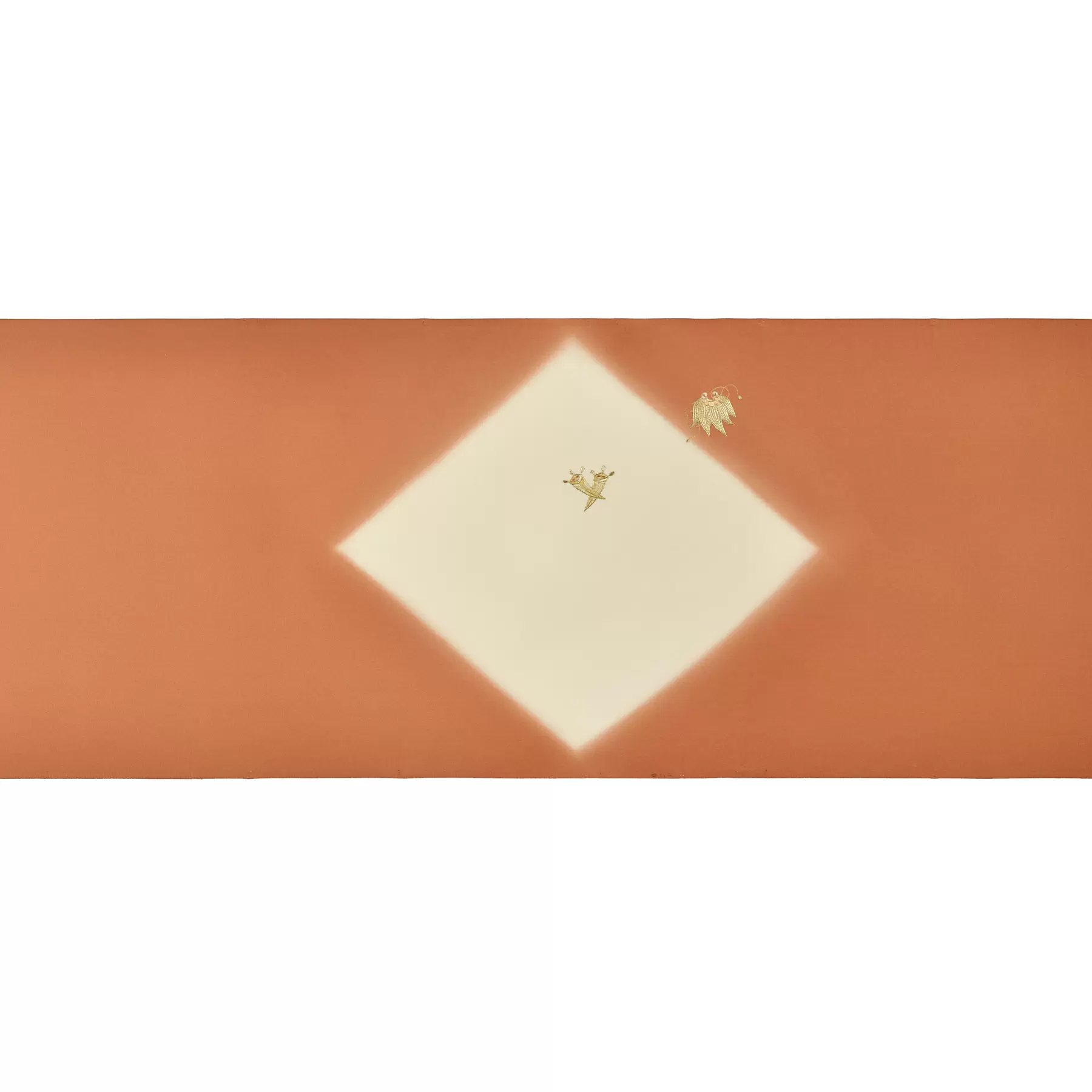 方勝の大きな三角形をどの位置に出すのかを、その時の気分やお好みによってお選びいただける楽しい染め帯です。