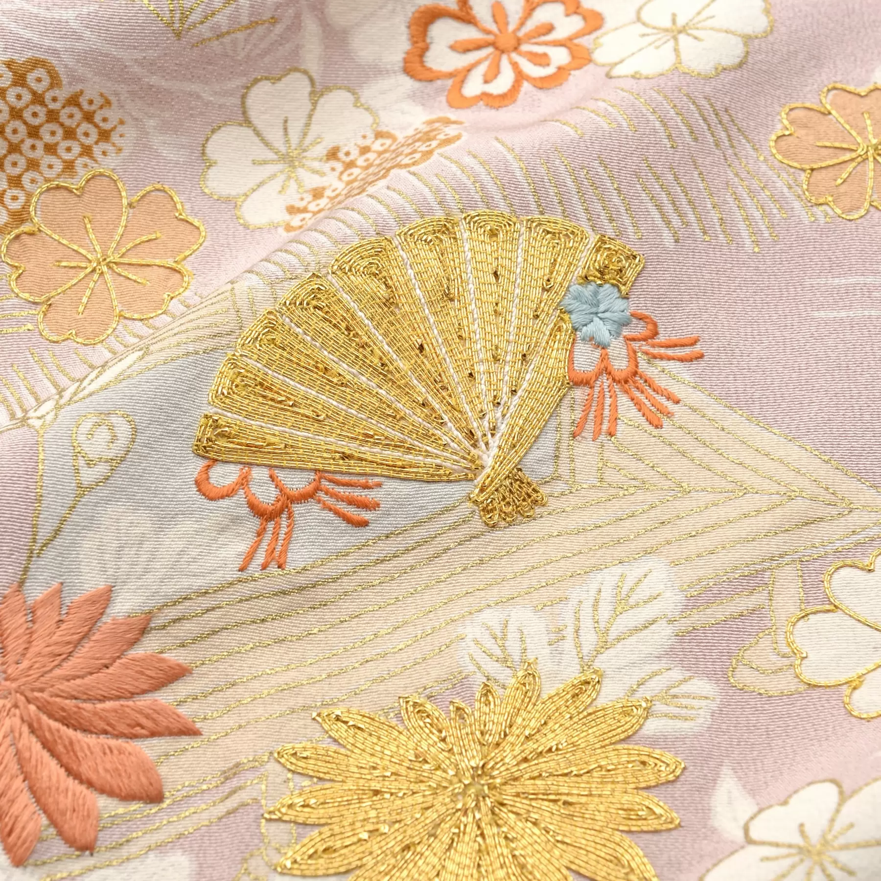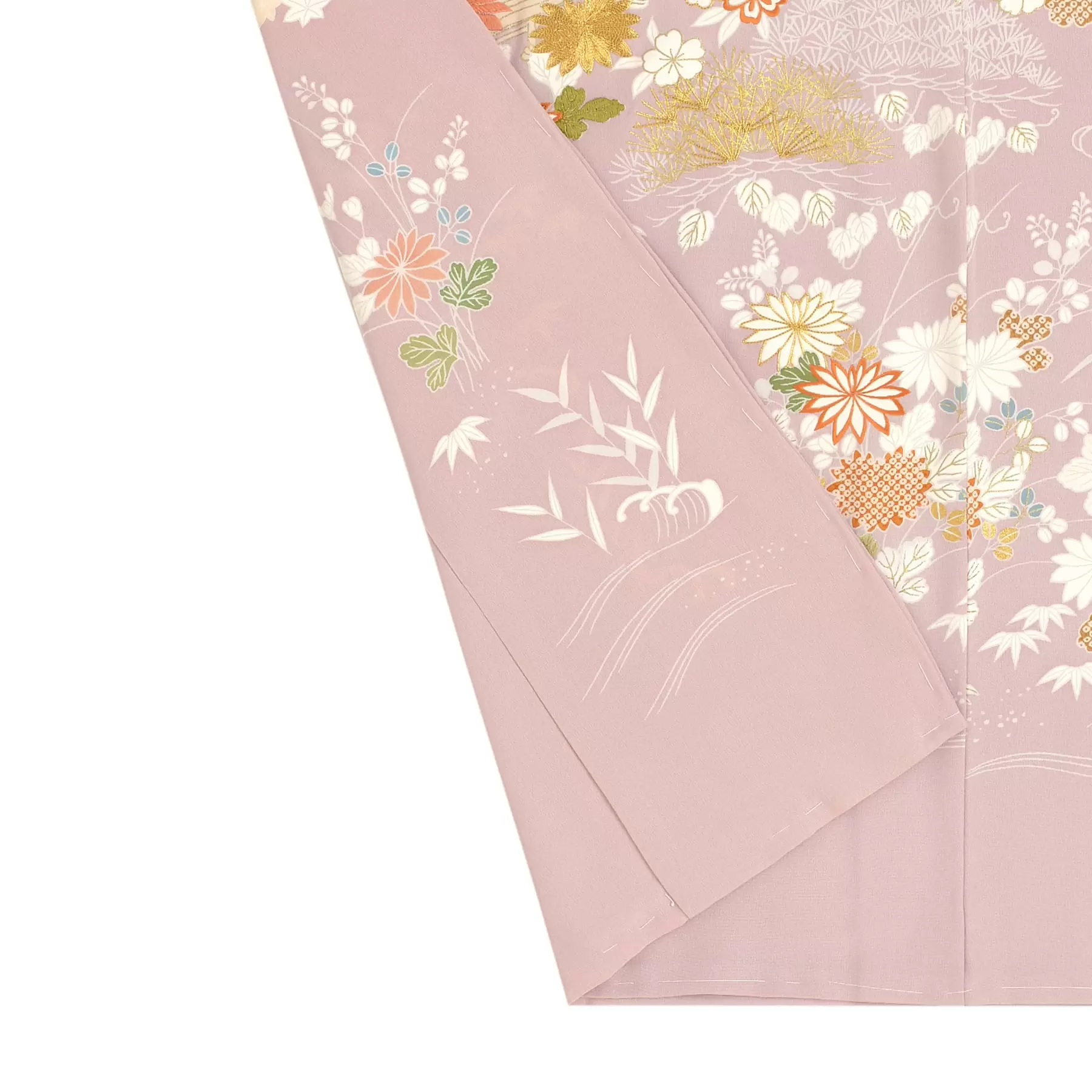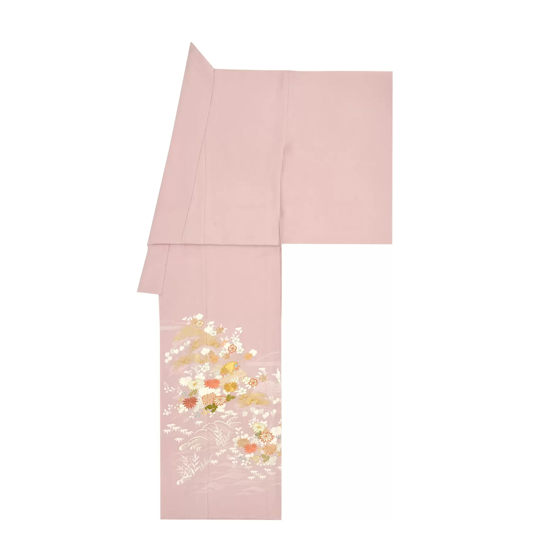 江戸時代の衣裳に好んで使われた貴族の宮廷の景色を描く御所解文様がモチーフ。深みのあるピンクの地色に、雅やかな庭苑の木々や花々が優雅に佇む情景を描きました。小ぶりな柄付で控えめな上品さを演出し、シーンに合わせてお召しになりやすい色留袖です。