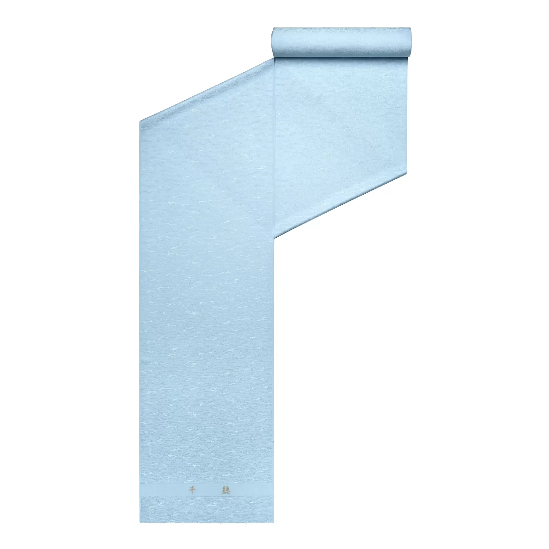 おめでたい兆しを知らせる瑞雲がリズミカルに重なる穏やかな地紋です。濁りのない水色が細やかな地紋の凹凸に良く映え、すっきりしながらも明るい印象を与えてくれます。上品な華やかさが装う場に彩を添えてくれる一枚です。