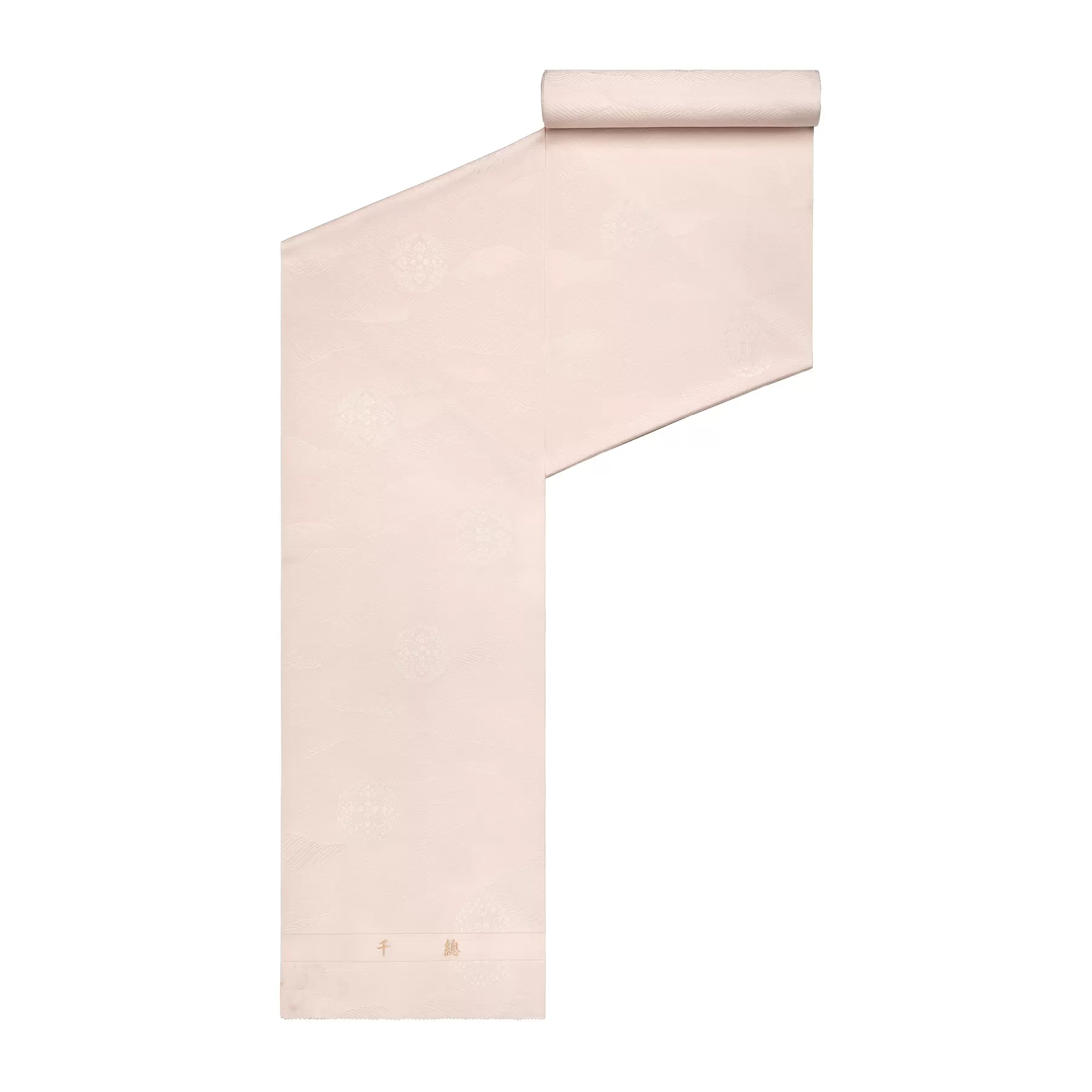 寄せては返す波と雅やかな有職紋が散らされた地紋の生地を、綺麗な桜色に染めました。透明感のある優しい桜色の上を、大きな有職紋が舞う華やかな色無地です。ご家族の記念日やパーティーの装いにぴったりの一枚です。