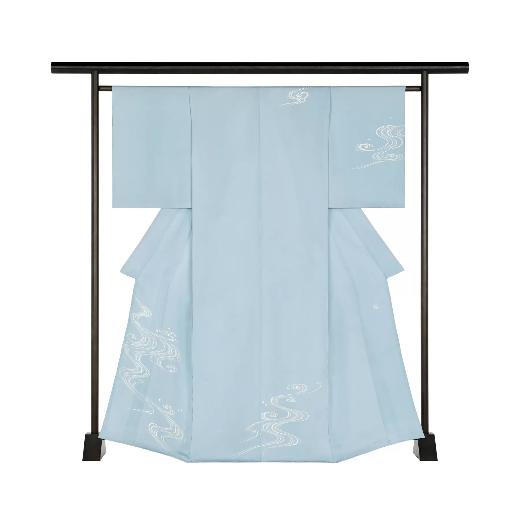 【色無地】 紋意匠縮緬・墨流道長文 | 単衣