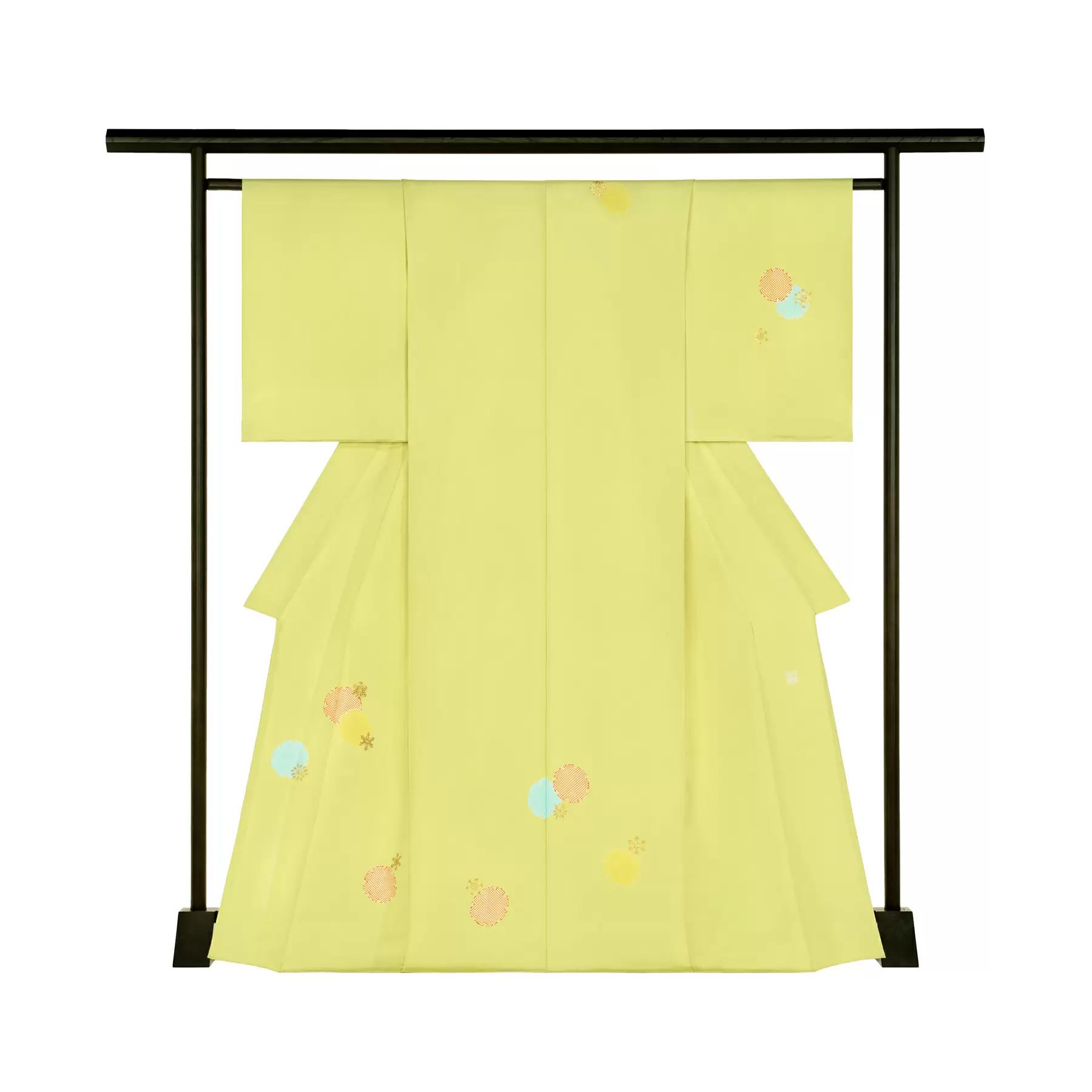 【色無地】 紋意匠縮緬・円取更紗文 | 単衣